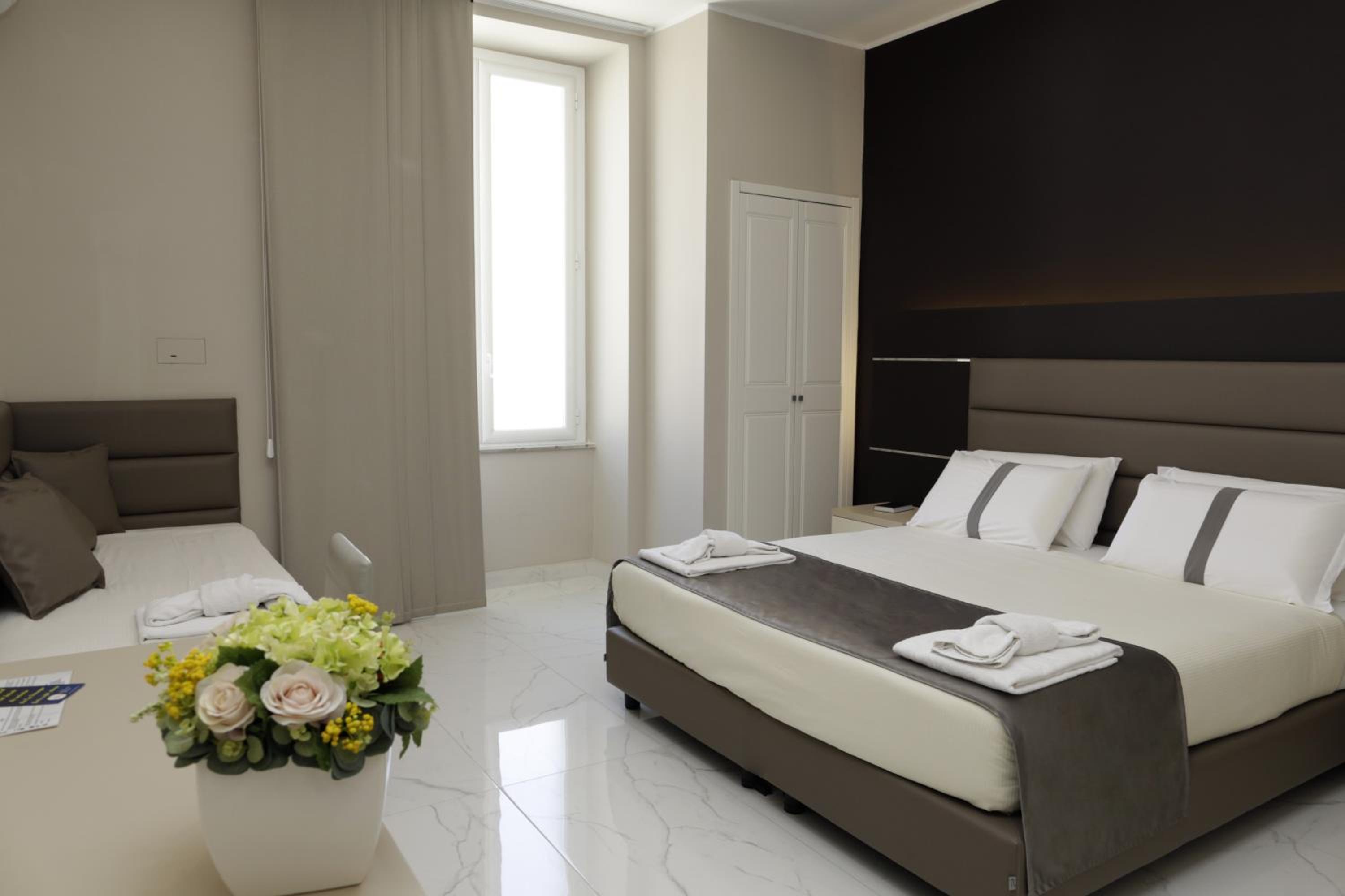 Hotel al centro di Napoli. Eccezionale lo staff che si è dimostrato molto professionale ma anche simpatico e accogliente (teneteveli stretti). Stanze ampie e fornite di tutto.