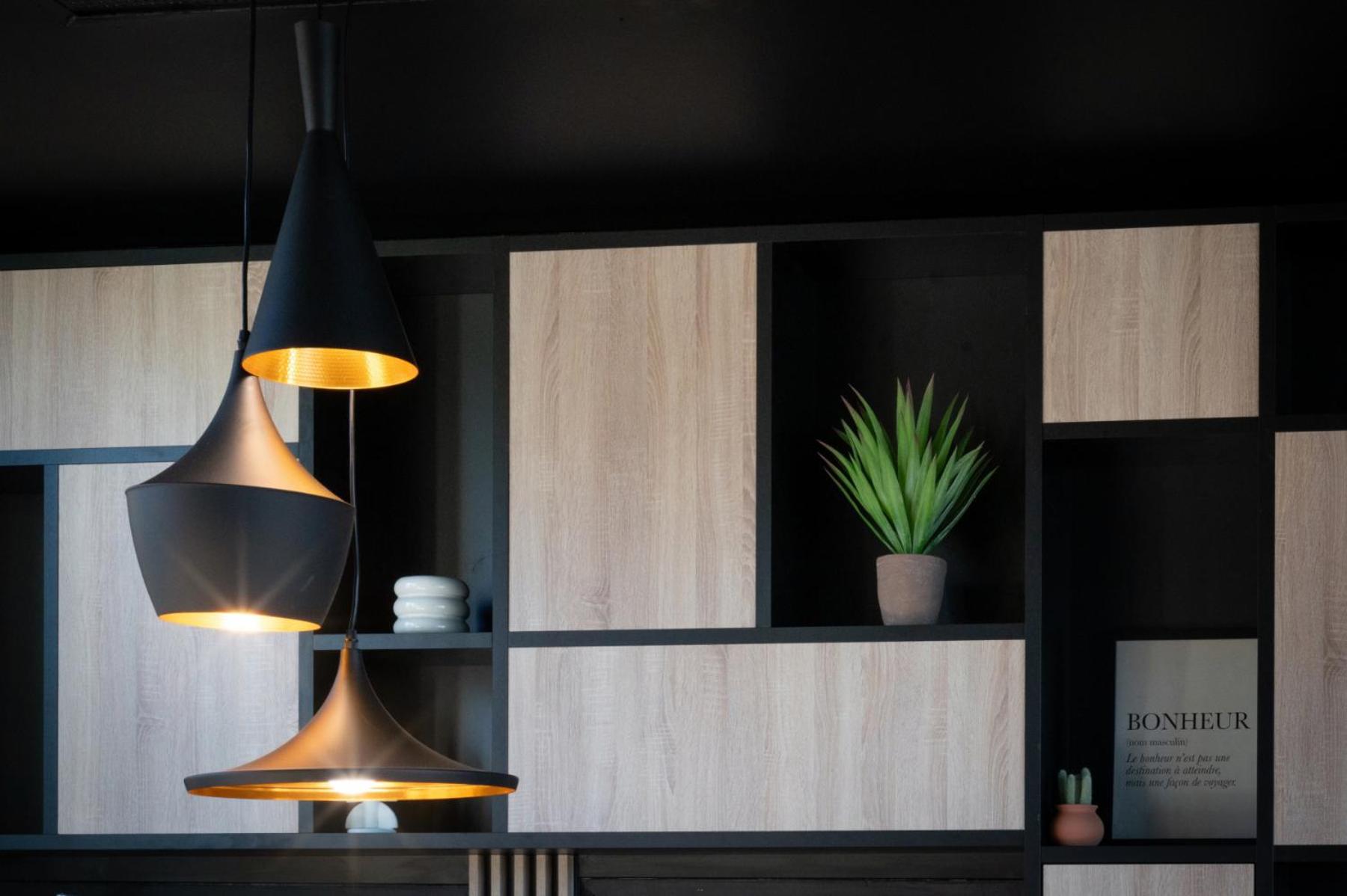 Murs et équipements un peu "ébréchés", "beaucoup d'h de vol". Pas de bouilloire électrique, étonnant dans un appart'hôtel contemporain. Des plans de pose dans la salle de bains seraient bienvenus.
