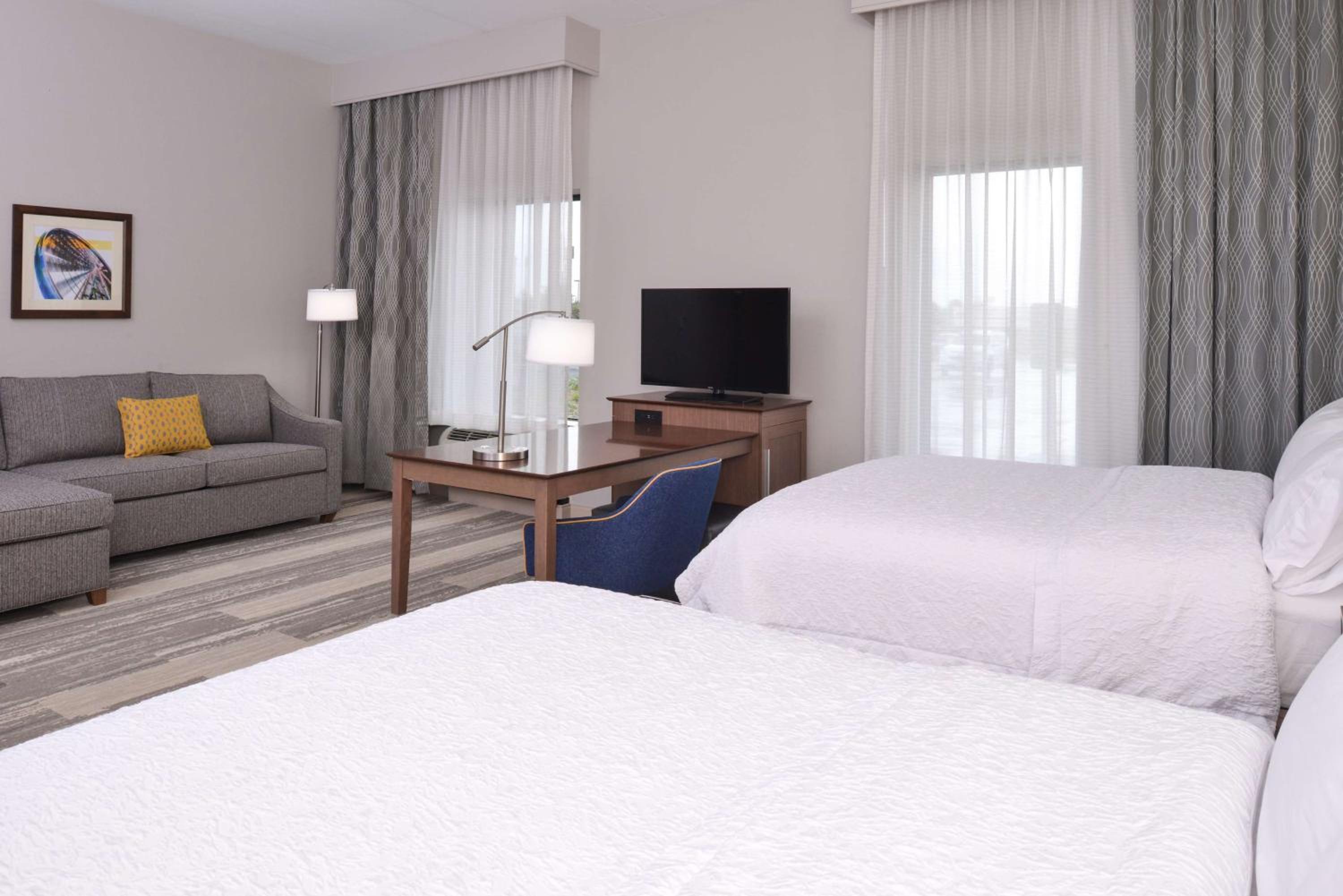 My family booked a room for an OVR volleyball event that my daughter was playing in. The morning of the event, we got locked out of our room after breakfast. The staff determined the battery on the door was dead and needed replaced in order for us to be able to get in. Unfortunately, the staff had no idea how to replace the battery. Over a half hour later/after being locked out of our room, my husband youtubed how to change the battery, told the staff what to get him, and changed the battery for them. Due to the foregoing, we were late to the tournament and my daughter was unable to play her first game. Not to mention the stress we were under trying to figure it out/get into our room knowing we were up against time. As we were waiting outside of our room, another Mom that was staying came out of her room and indicated that they ran into the same issue when checking in at midnight the night before. One of their maintenance guys indicated on the phone that he is the only one that knows how to change them, and he works second shift. Hampton Inn refused to refund us. We booked to make the morning of the tournament less stressful, but instead, it ended up more stressful. Do NOT recommend staying here if you have somewhere you need to be at a certain time and if you do not want to have to figure out their jobs for them.