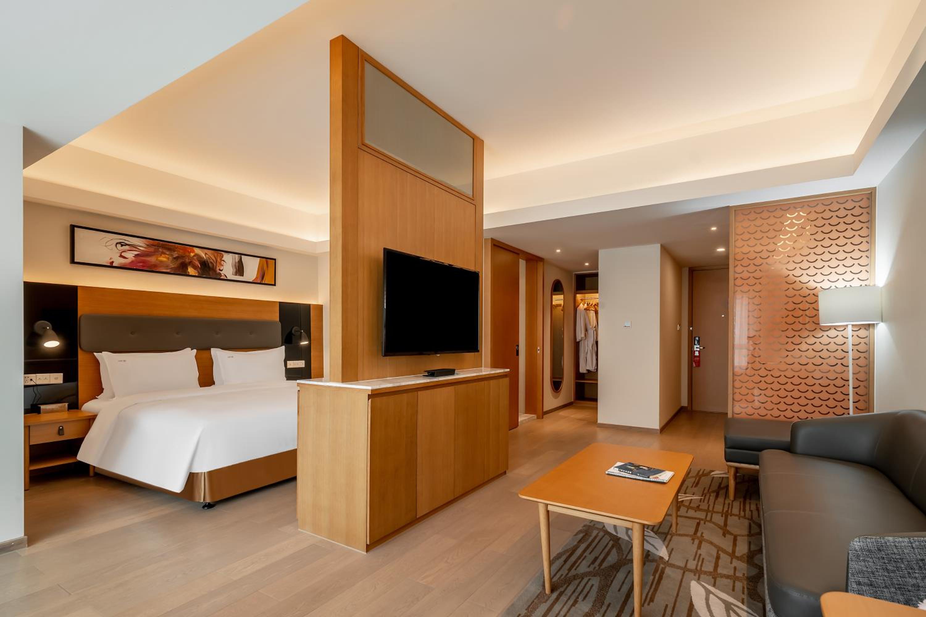 Отличная локация, номера и персонал. Останавливаюсь второй раз. Первый раз был в Шанхае на выставке весной 2025 года и в декабре 2025 по дороге в отпуск был тут с транзитом на 5 ночей. Прямая ветка от метро (1 час 20 минут), на такси 50 минут. Рядом куча ТЦ со всеми нужными магазинами, также через дорогу (5 мин пешком) есть сквер с европейской кухней. Рекомендую австрийское кафе, где после обеда есть happy hour 1+1. На обратном пути в Россию решили остановиться тут же. И да, номера и еда отличные!