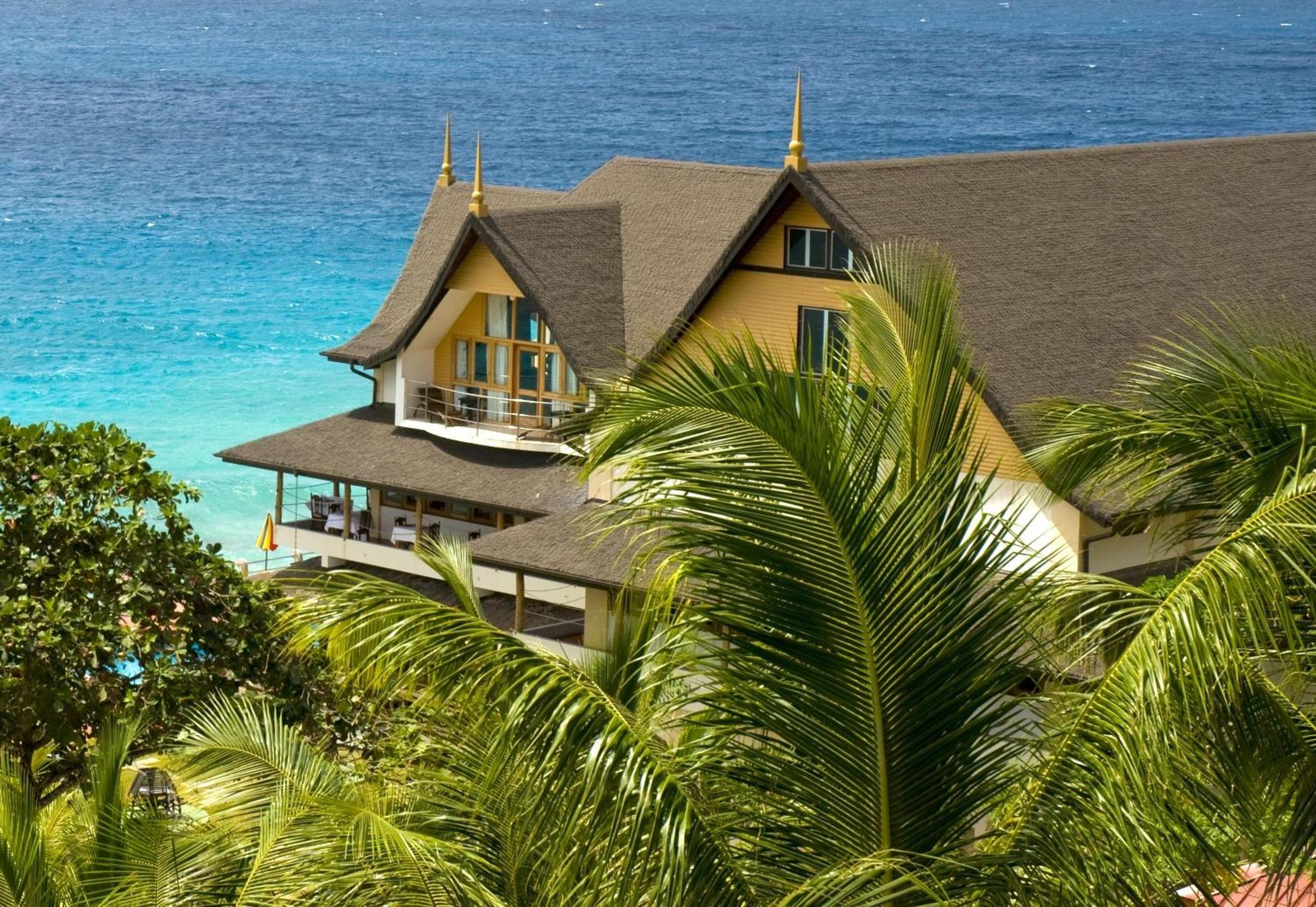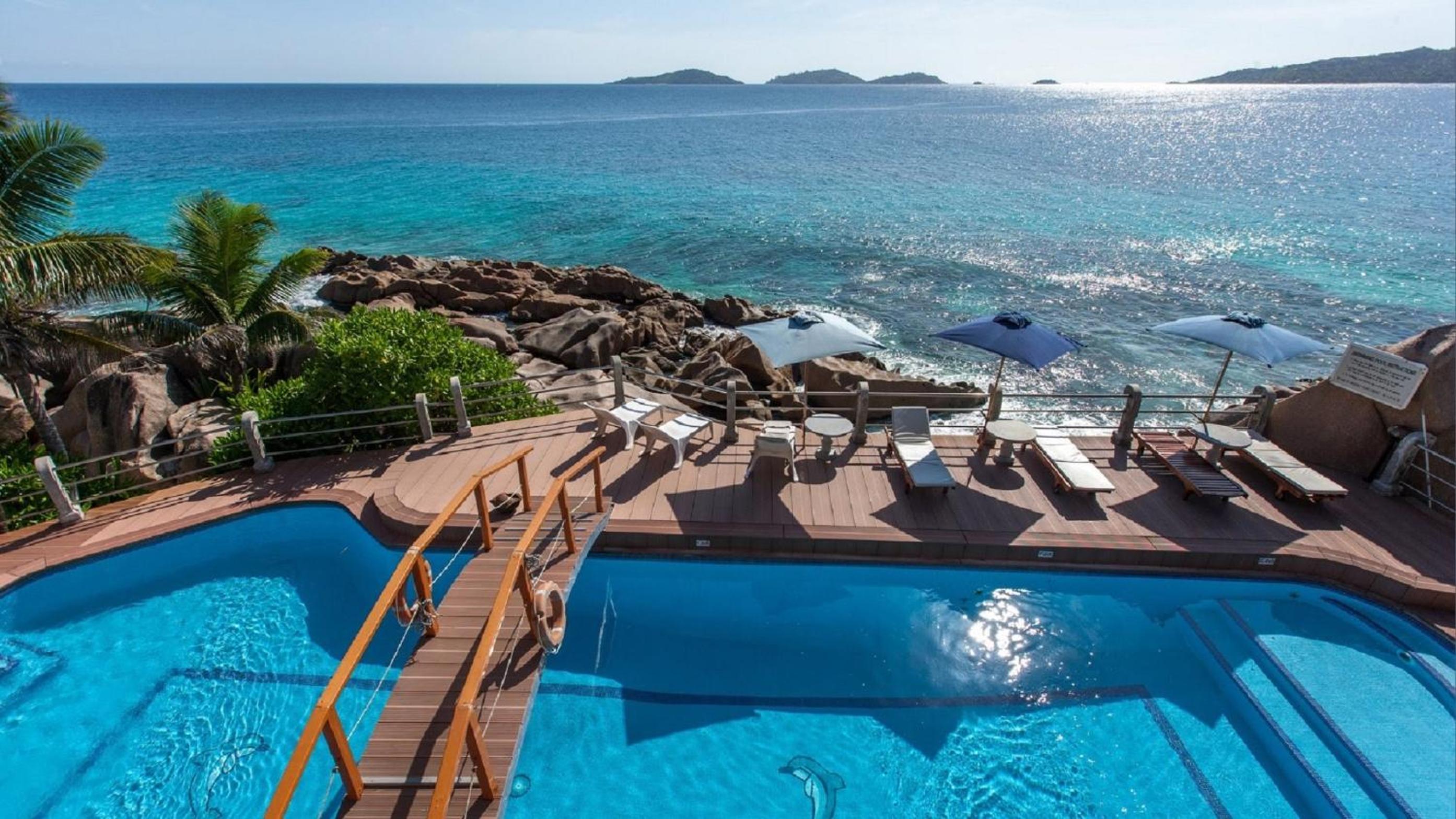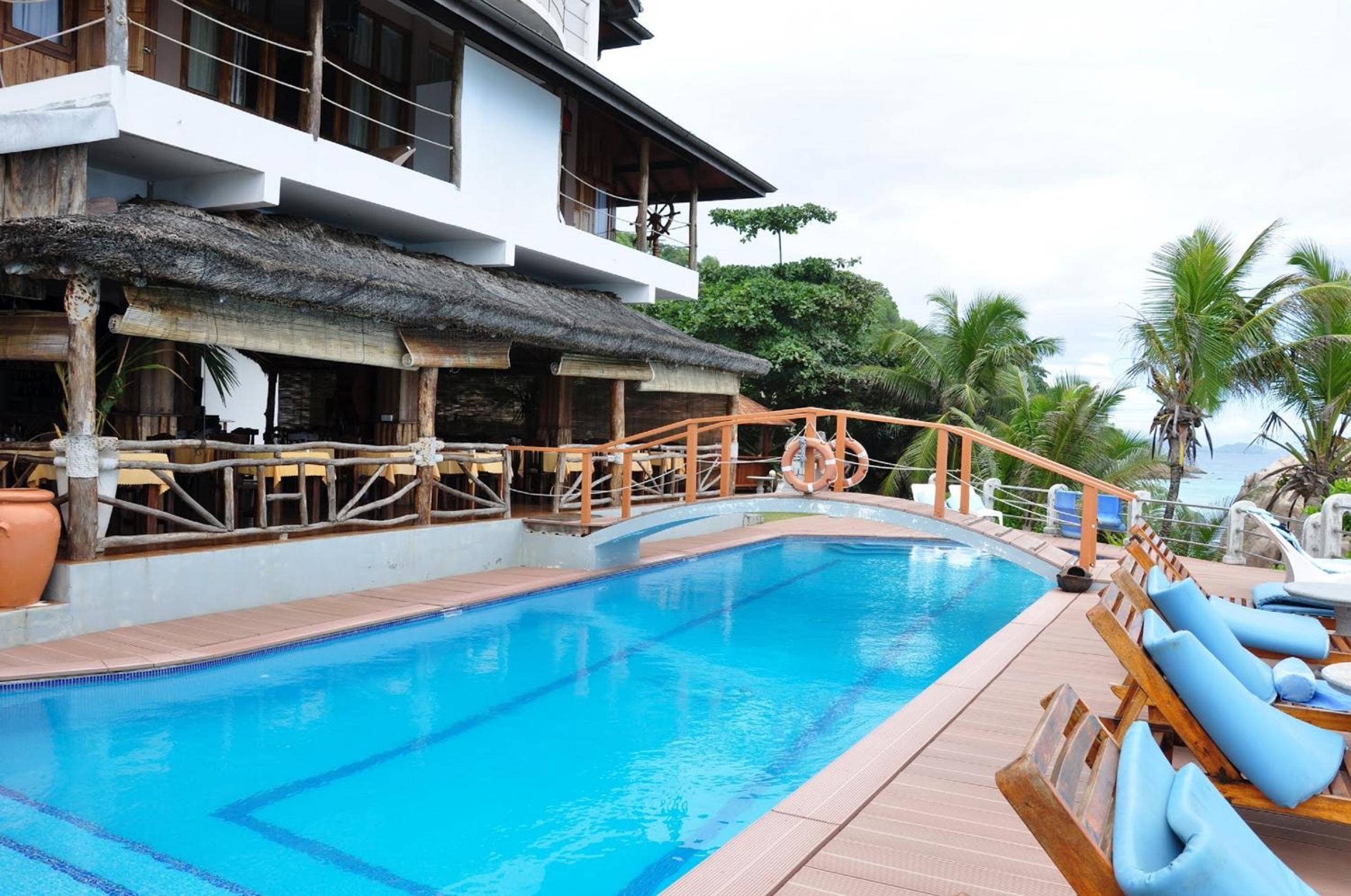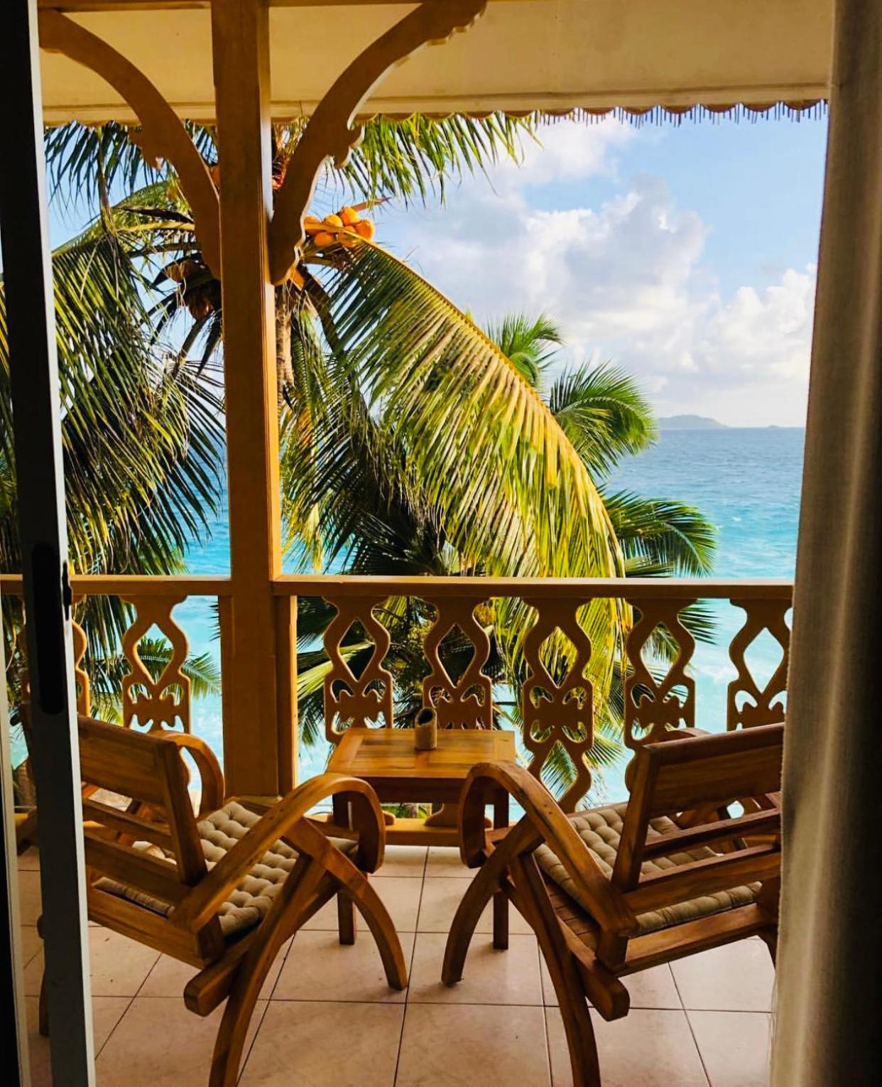 Patatran Village Hotel in La Digue offers breathtaking views of the beachfront, providing a serene escape for guests looking to unwind.