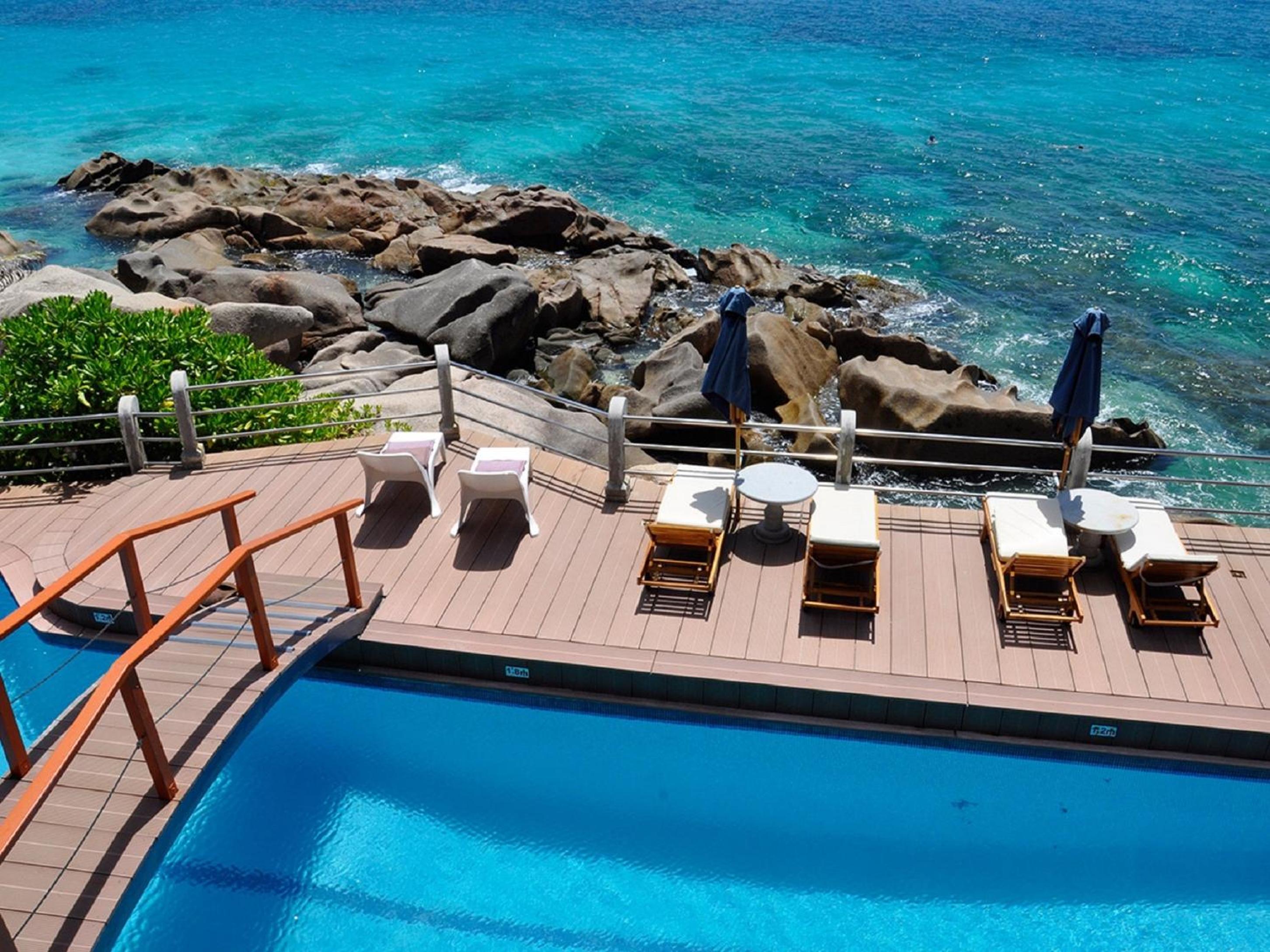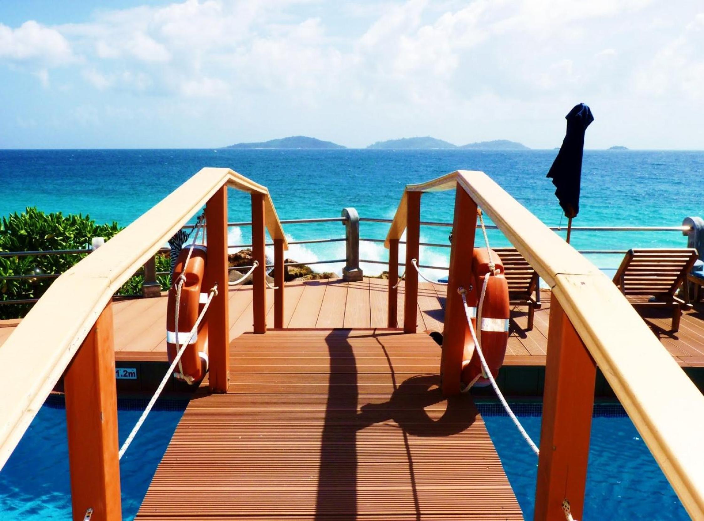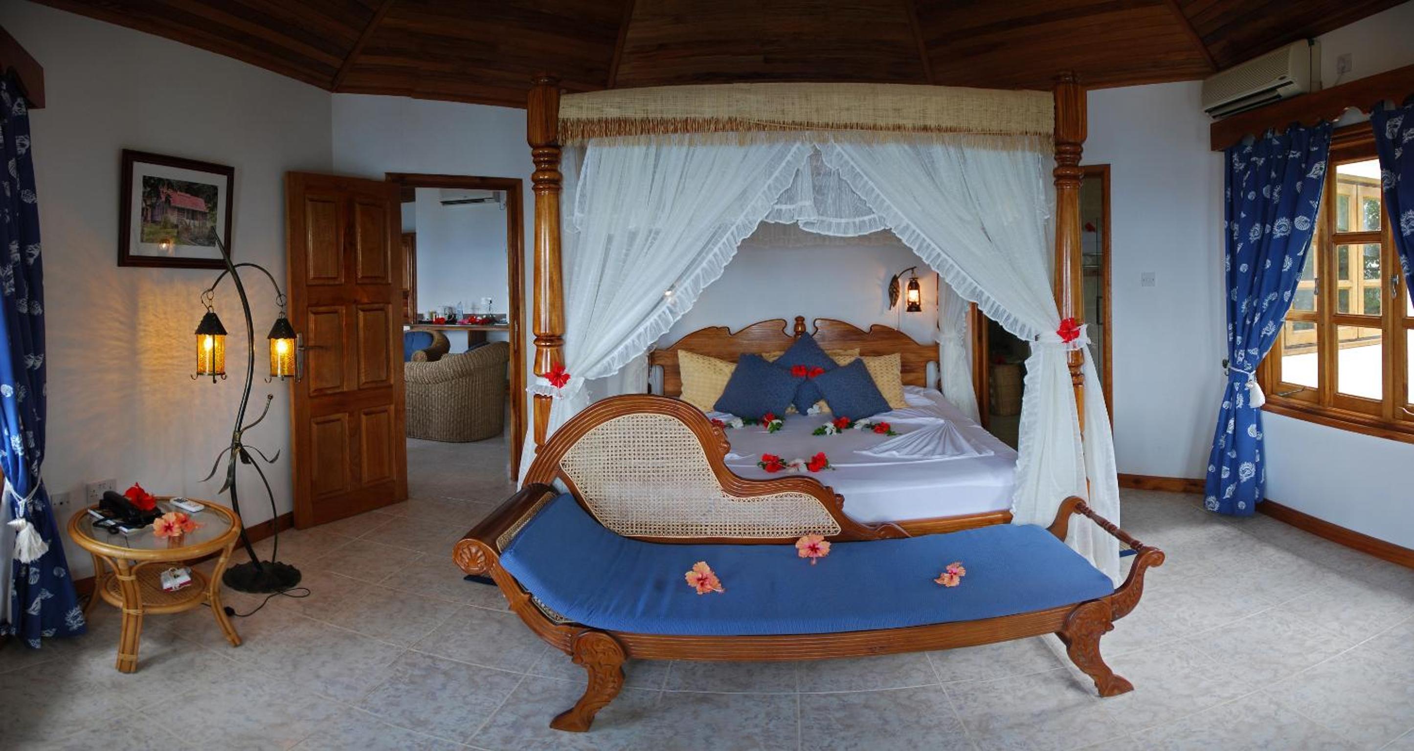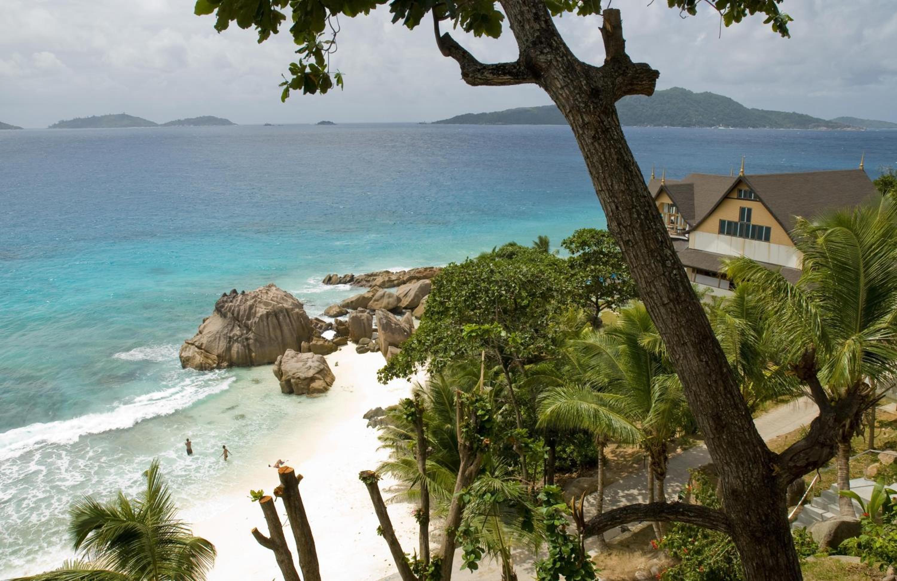 Patatran Village Hotel in La Digue offers breathtaking views of the beachfront, providing a serene escape for guests looking to unwind.