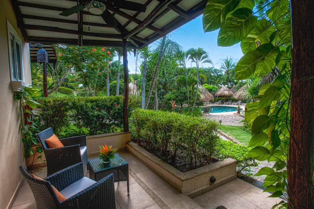 It is centrally located adult boutique hotel in the town of Tamarindo, yet hidden in a lush garden setting.