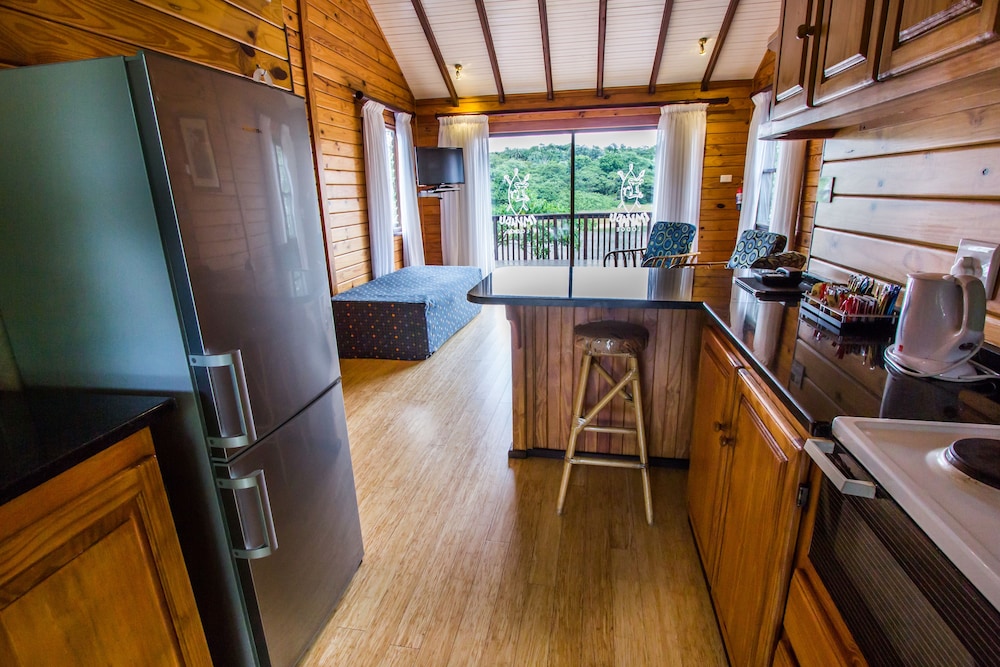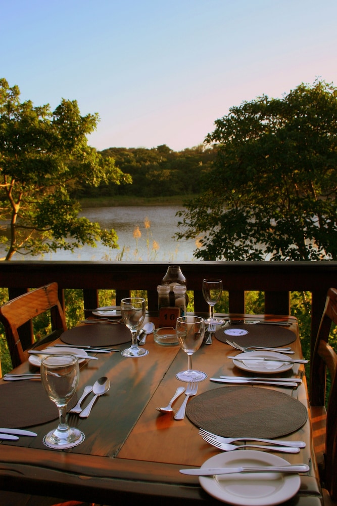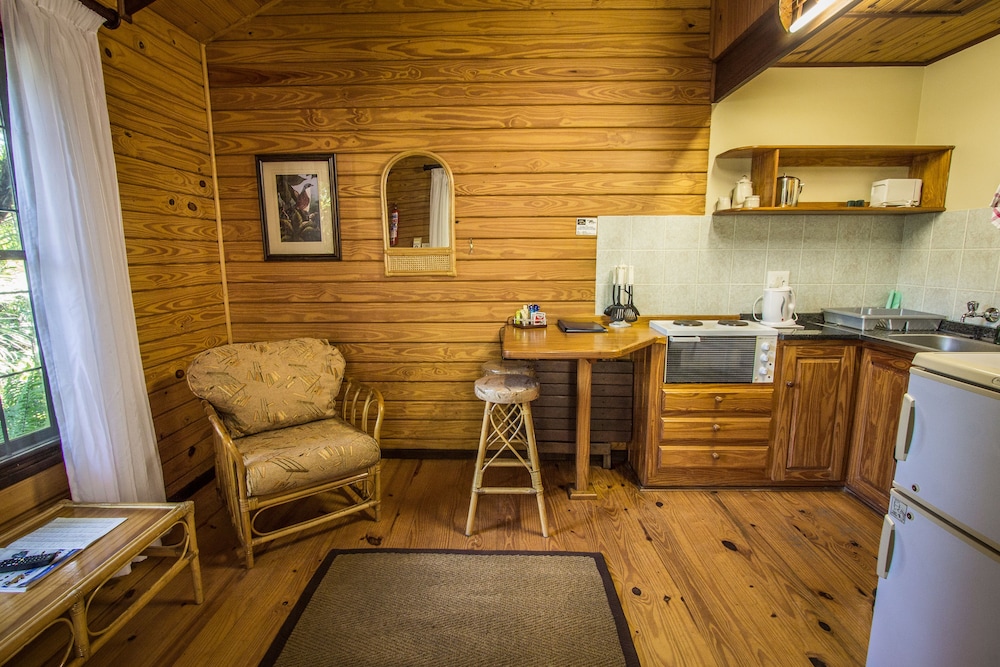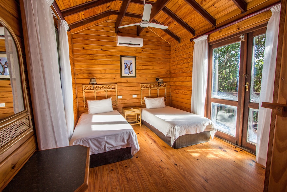 Nice place to stay over when in Richards Bay. Sea view from sundowner bar and peaceful location. The cabin had everything needed, especially an air conditioner but if you can not sleep with too much light in the room the outside light can be a problem. This is a very good thing for security but there should be the choice to darken the rooms with blackout curtains if you like a dark room at night.