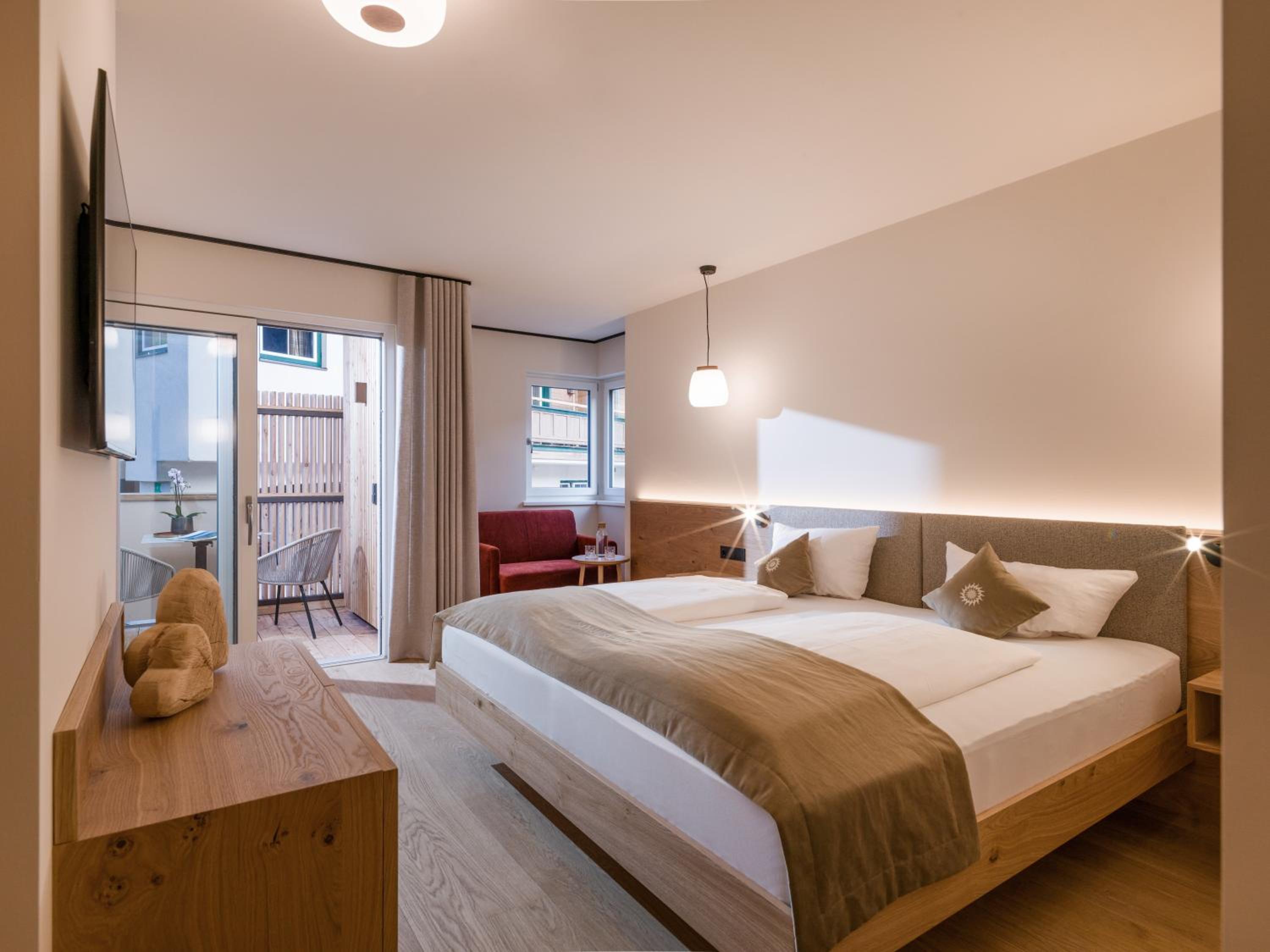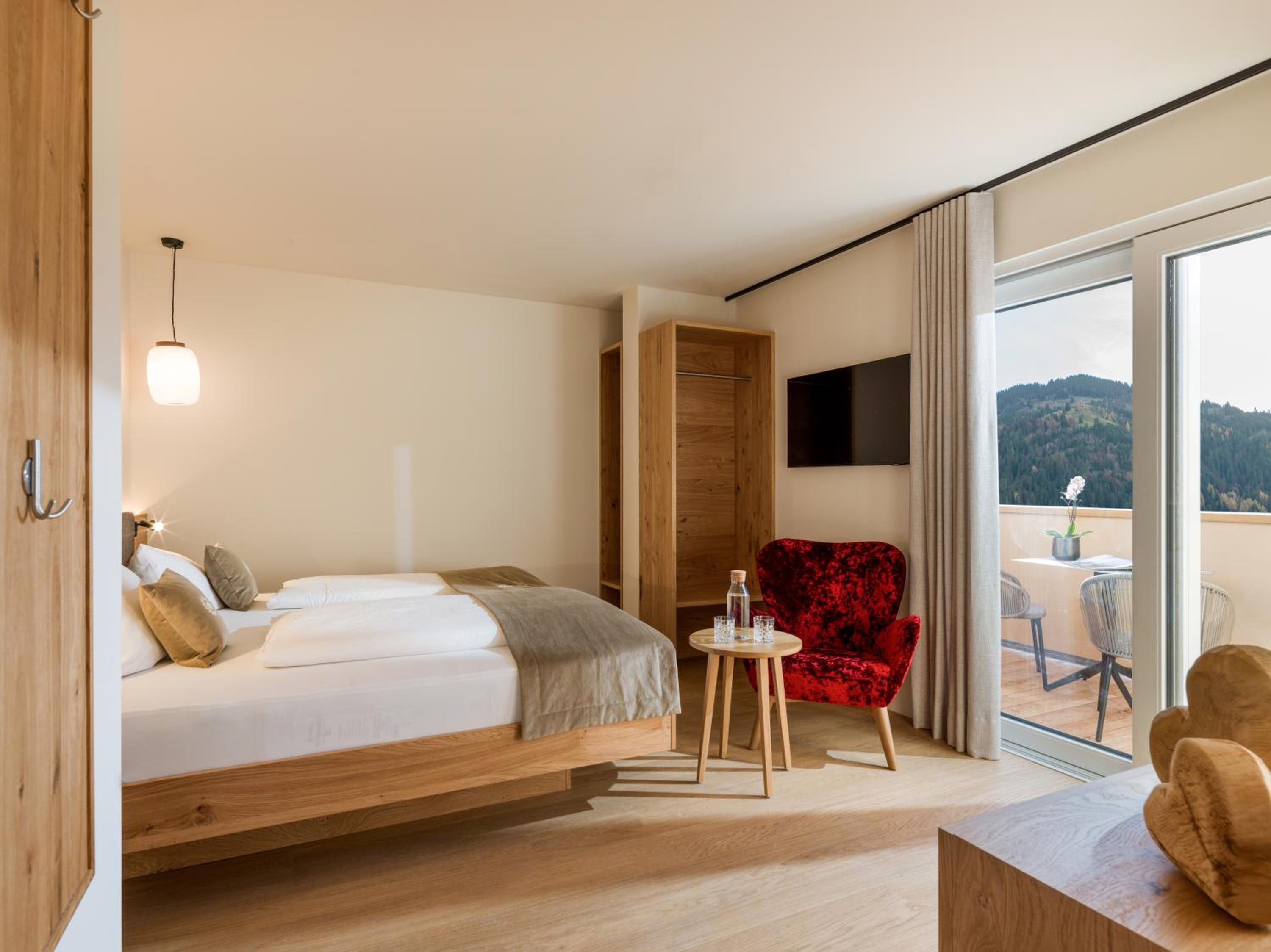Das Hotel liegt zentral im Ort Niederau und bietet ausreichend Parkfläche.