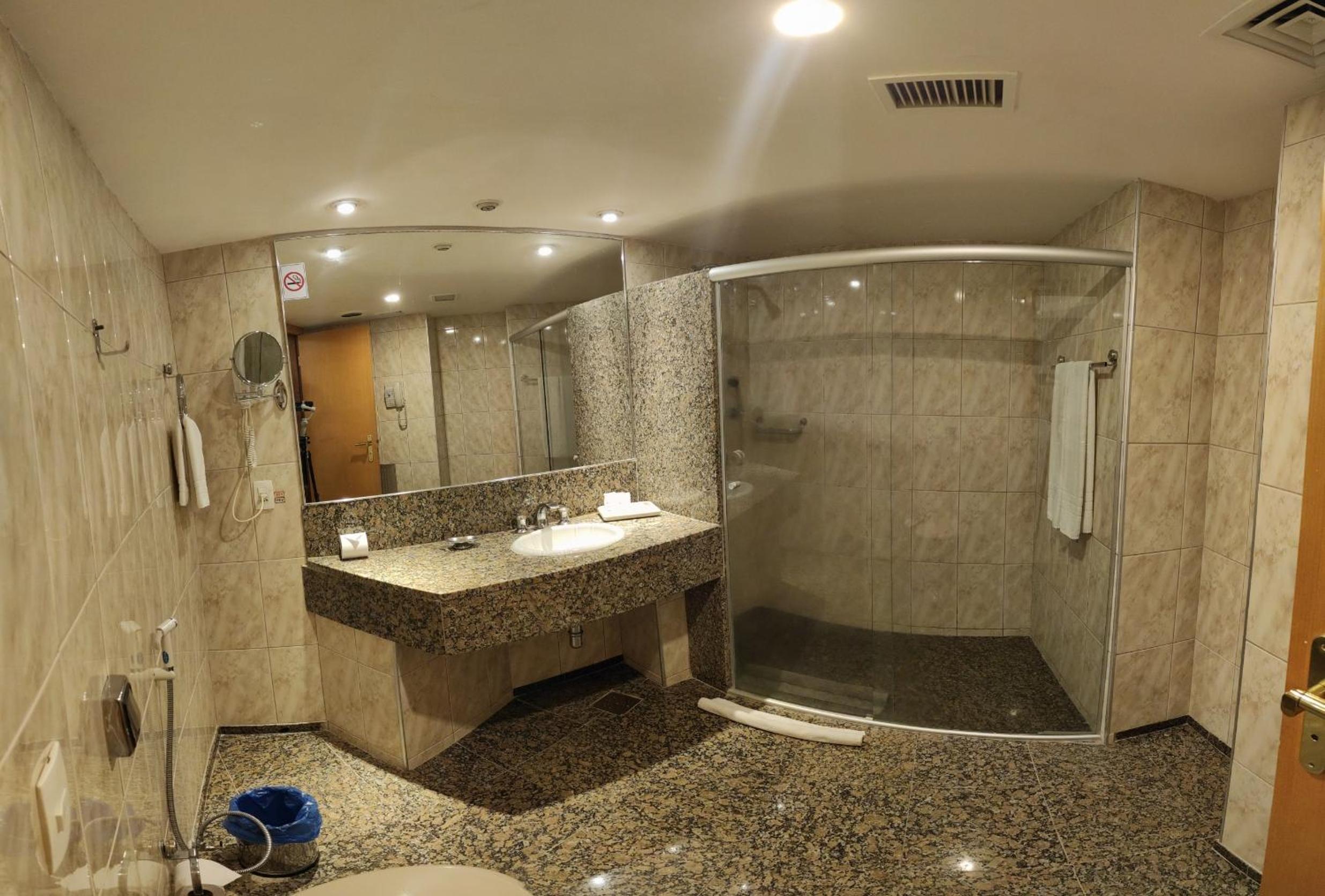 Devido ao formato do hotel, não há janelas no banheiro e nem exaustor, o que faz com que o banheiro fique bem umido. No quarto em que nos hospedamos, além da umidade, há uma falha no escoamento do box, o que faz com que a agua fique parada. Mas nada que tenha impactado a minha nota ao hotel.