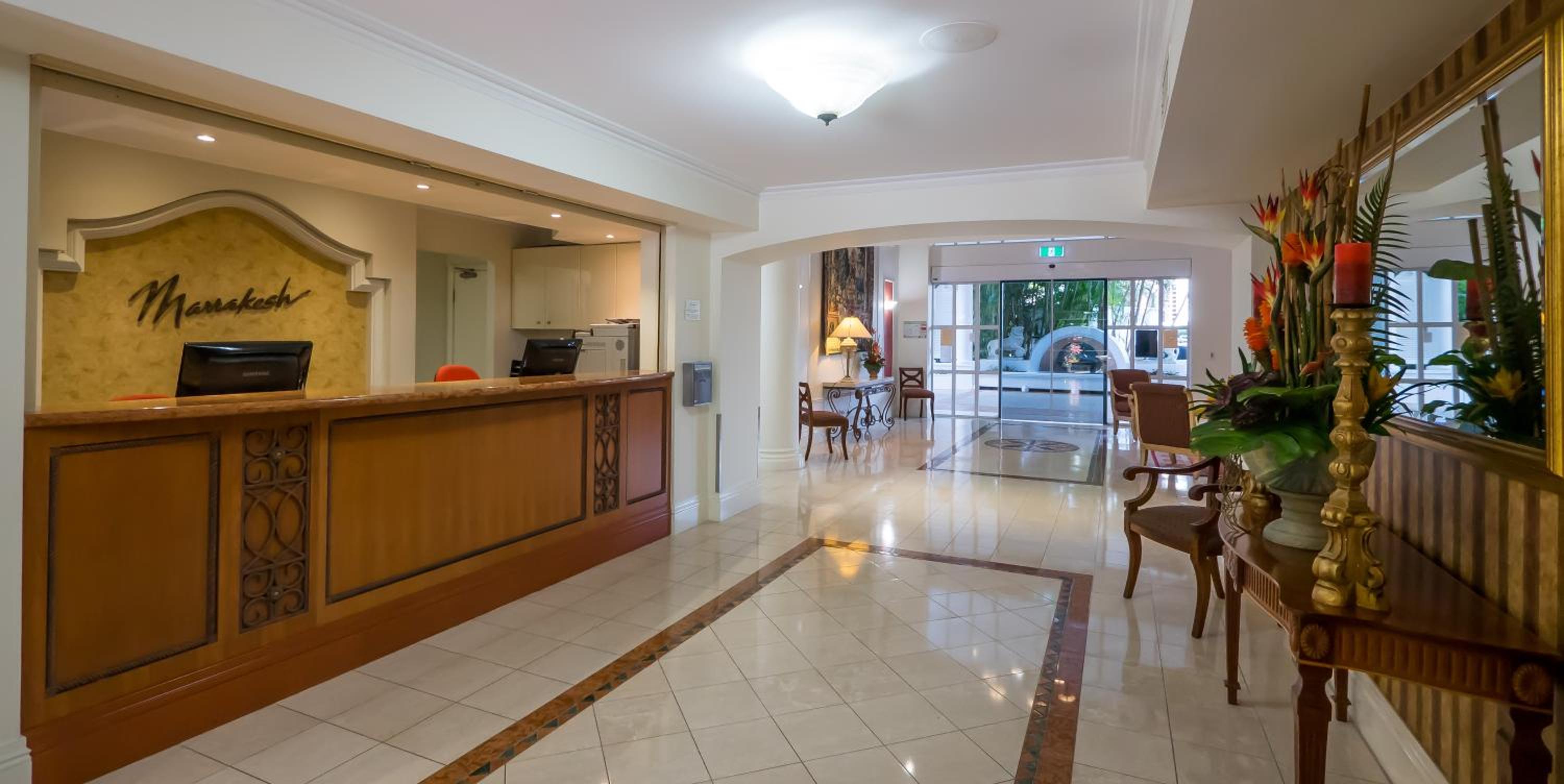 We have just returned home from 9 nights at the Marrakesh. Overall, a fantastic property to stay at, as location is very central and easy get around, by foot and using public transport. Pools, sauna and BBQ areas were excellent. Easy walk to the beach and local shopping centre for supplies. We stayed in a Superior One Bedroom Apartment, overlooking the pool. A fantastic outlook and could see peeps of the ocean. The room had everything you needed but could do with some updates. Mainly the bathroom - taps in sink and shower very temperamental, shower had mold on walls and tiles and could have done with a good clean, pink mold in the sink/plug hole and vanity very tired. Was a great place to stay, just felt a few updates and cleaning the bathroom, would have made a big difference.