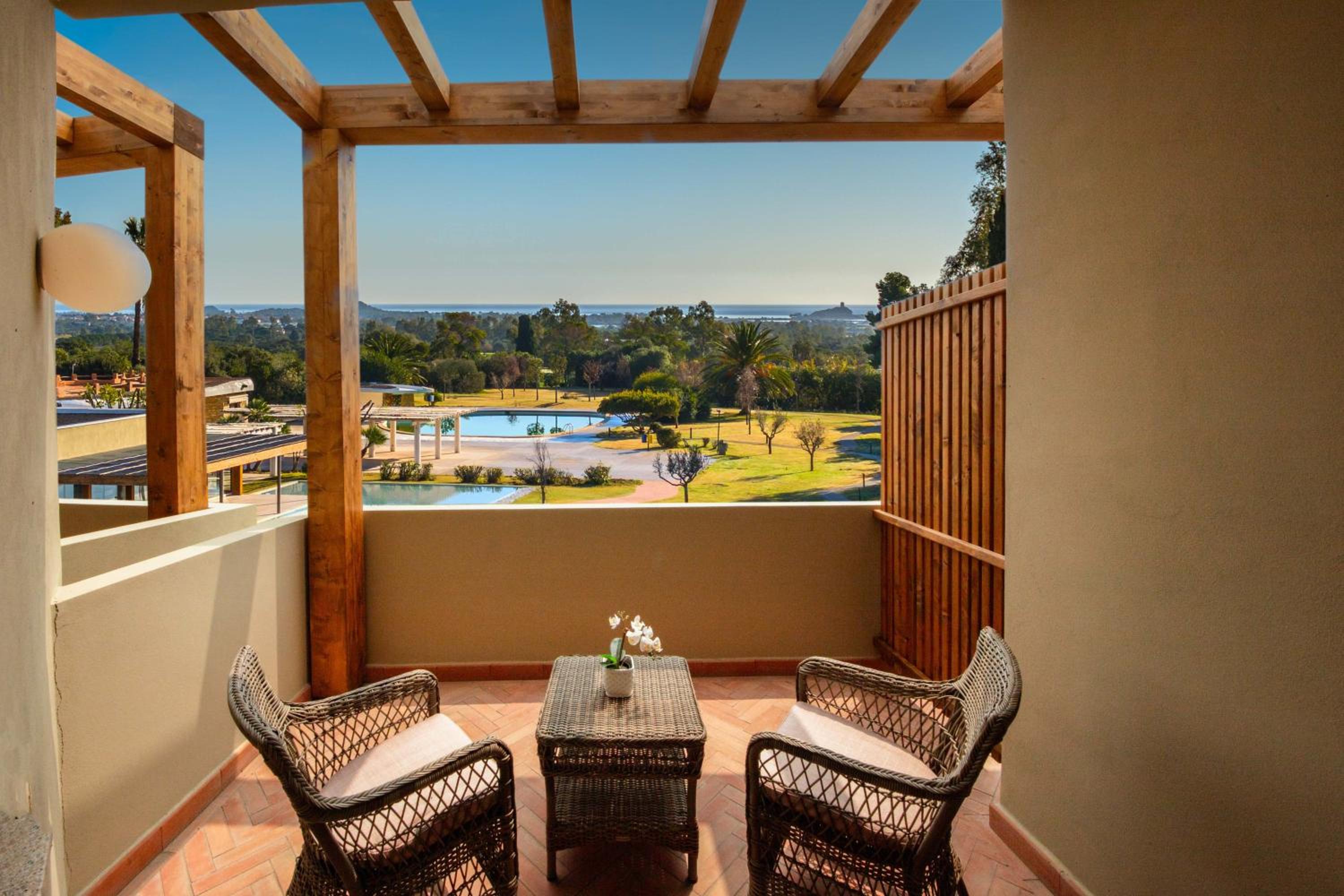 Ein sehr schönes, frisch renoviertes und gediegenes Hotel. Äußerst zuvorkommender Service. Großzügige Anlage von der Lobby über die Bar bis hin zum Restaurant mit Innen- und Außenbereich. Schönes Wasserbecken an der Restaurantterrasse erweckt den Eindruck, dass man am Meer sitzt. Großer weitläufiger Poolbereich mit schöner Poolbar. In 5 min ist man mit dem Auto am Strand oder in Pula mit der historischen Stätte Nora. Der Golfclub in der Anlage Is Molas ist sehr gut gepflegt und gibt Rabatt für Hotelbewohner.