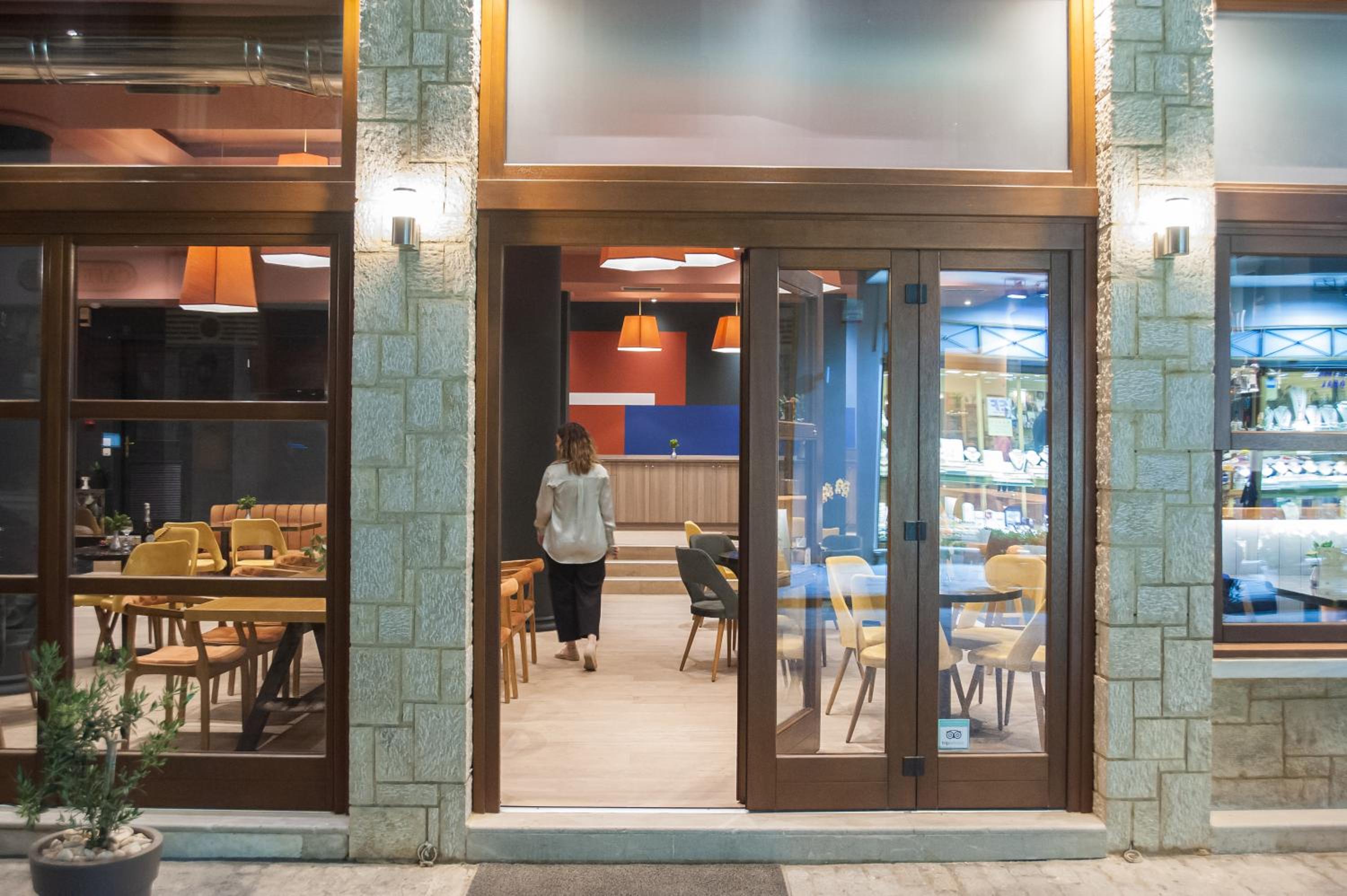 As anywhere else in Greece it is rather difficult to park in the town. The hotel has a small parking lot with limited spaces. The bathroom was so tiny that the shower and the toilet had to be placed next to each other without any separator, so whenever someone showered the toilet seat and the floor get all wet.