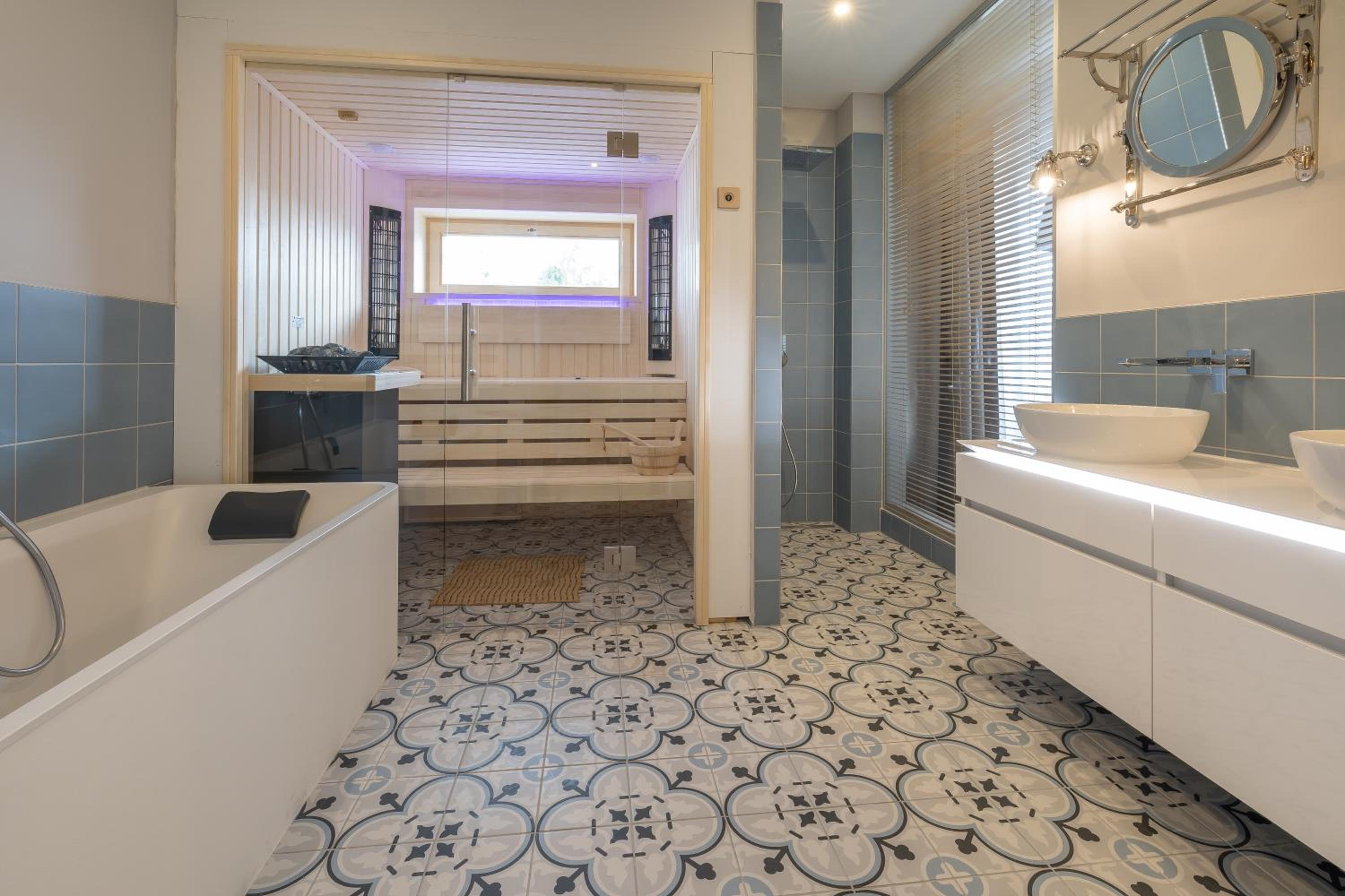 Die eigene Sauna im Zimmer, Wellnessbereich und das Zimmer, eigentlich alles