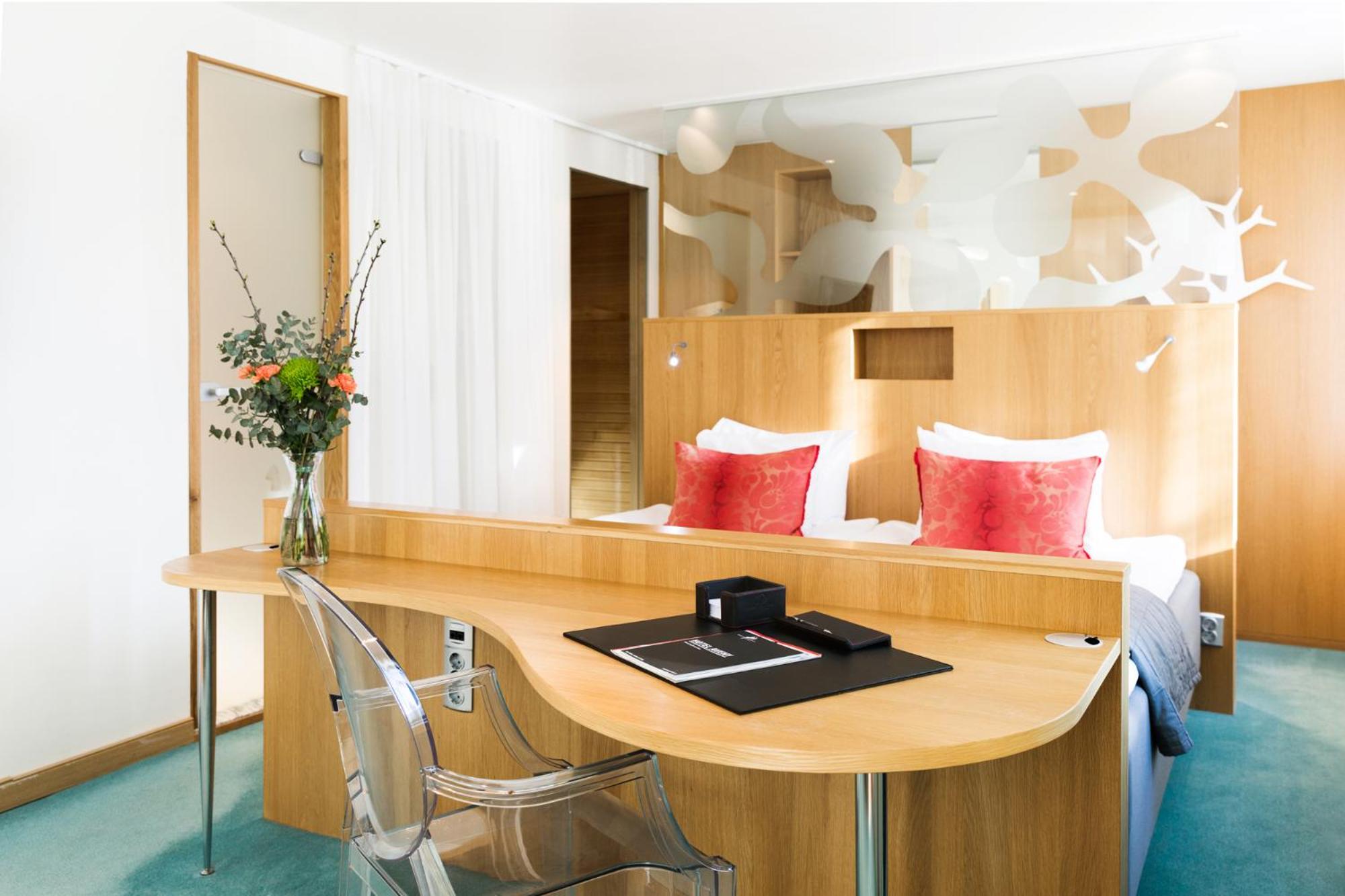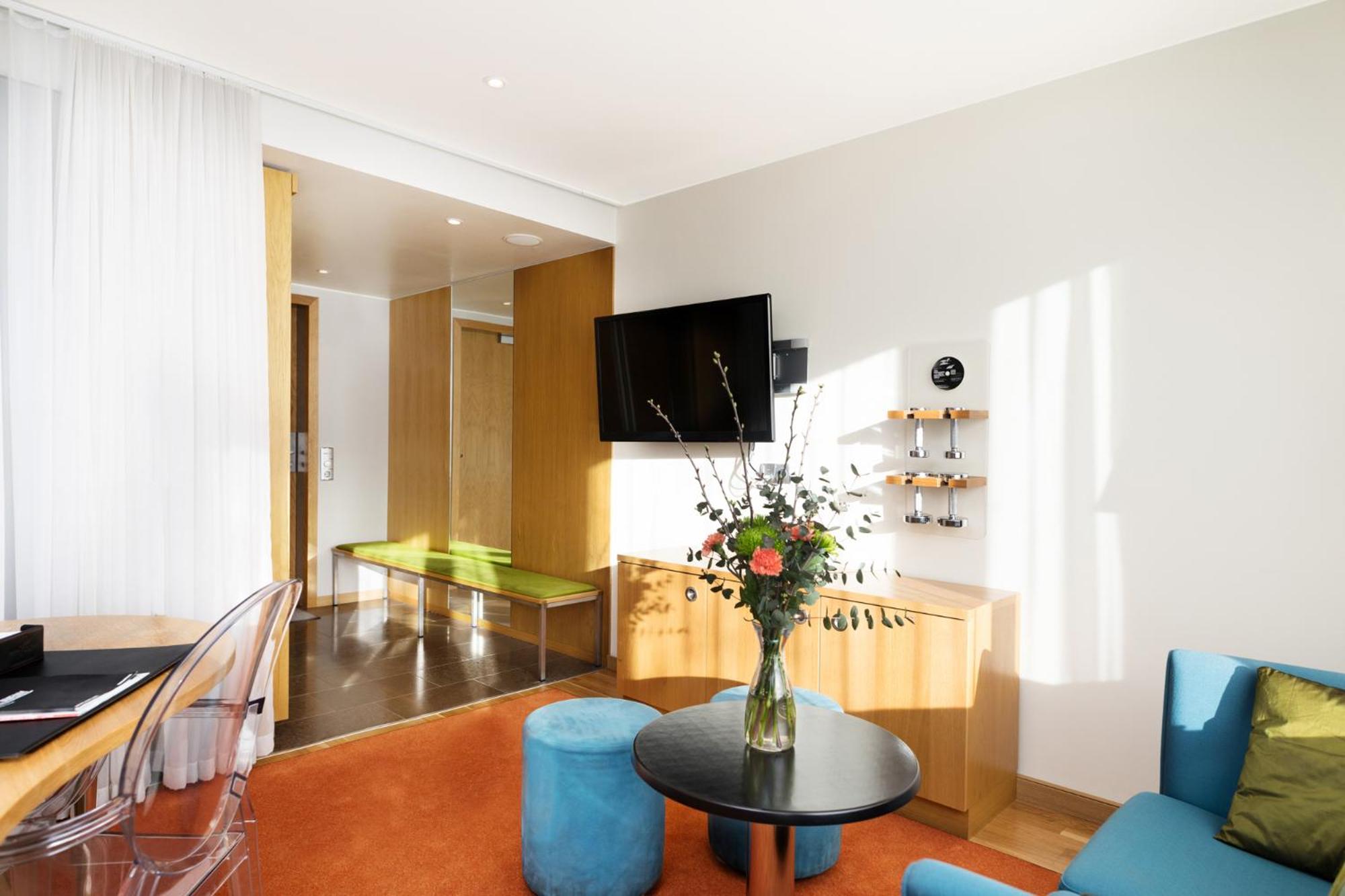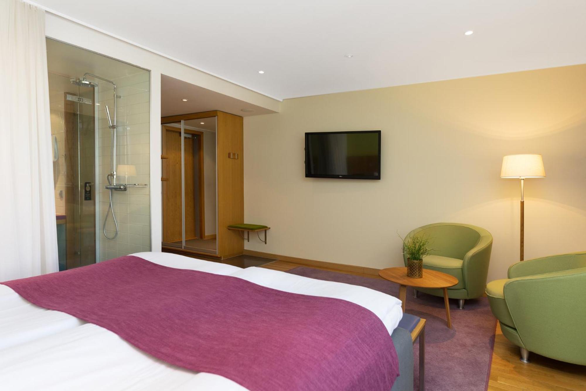 ProfilHotels Aveny’s rooms are brightly decorated. Each room has a tiled bathroom with a rain shower. Some rooms have a private spa bath.
