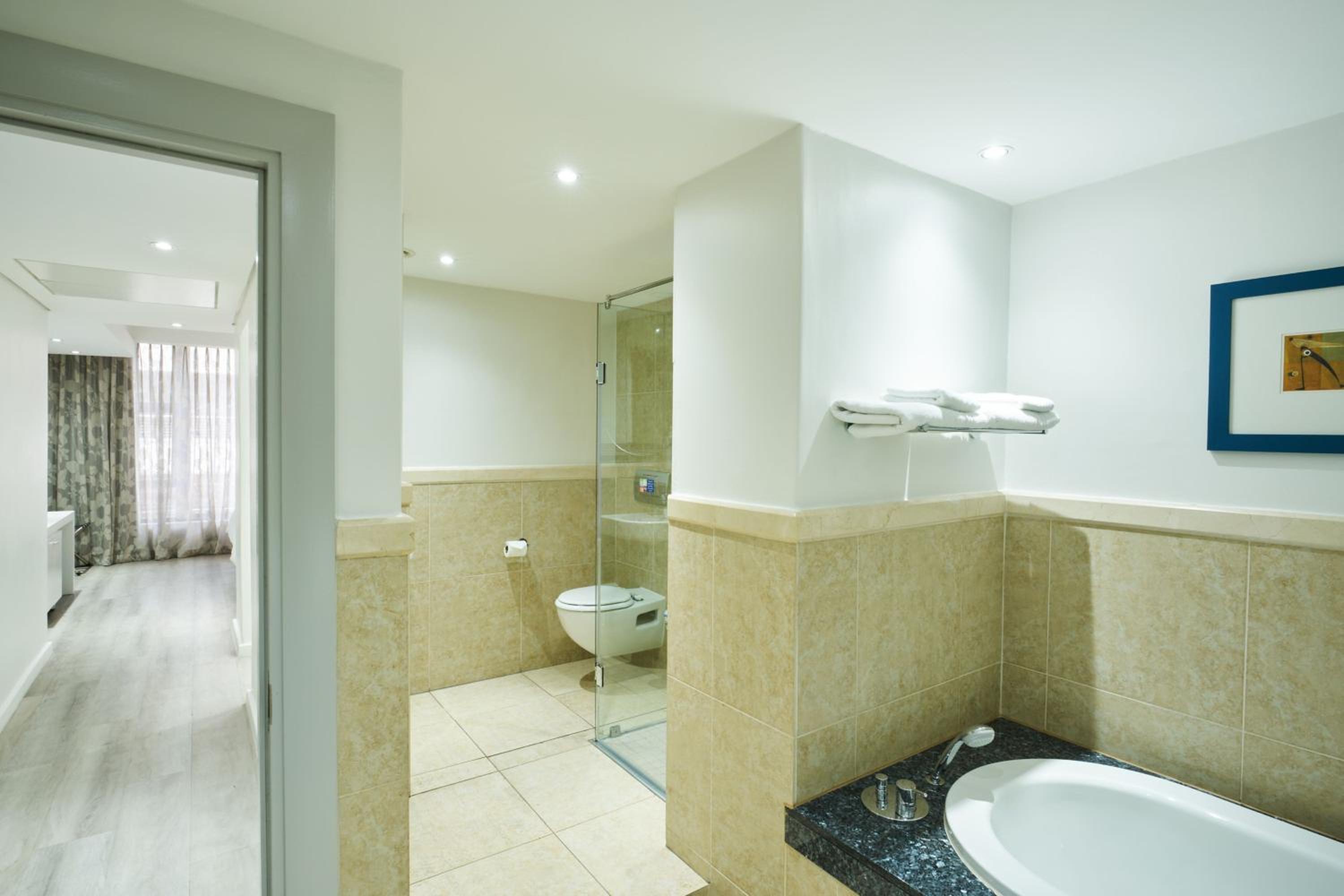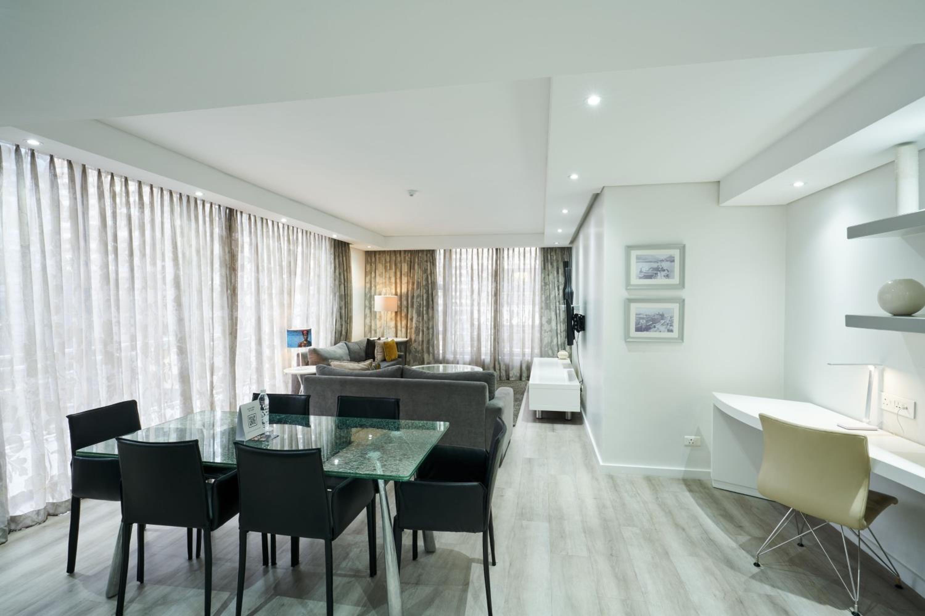 L’appartement était spacieux et confortable, lumineux et très propre. L’hôtel Protea North Warf se trouve a 15 min à pieds du Waterfront, lieu de multiples activités, shopping et très bons restos.