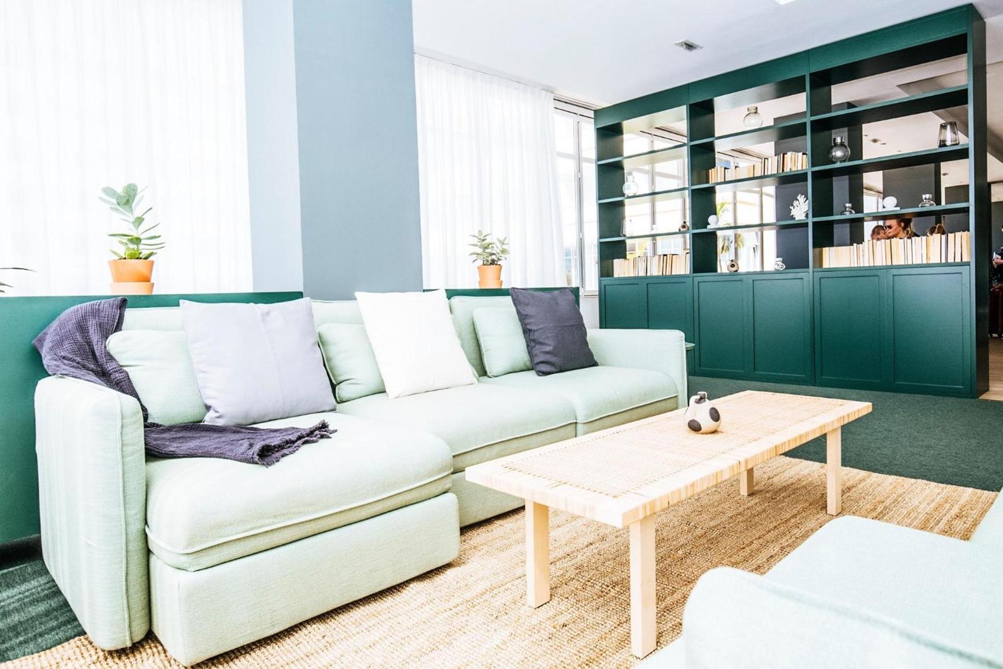 Experience bold and vibrant decor in our rooms, each equipped with a kitchen and a private balcony. Relax in the lounge area with a comfortable sofa and flat-screen TV for your entertainment.