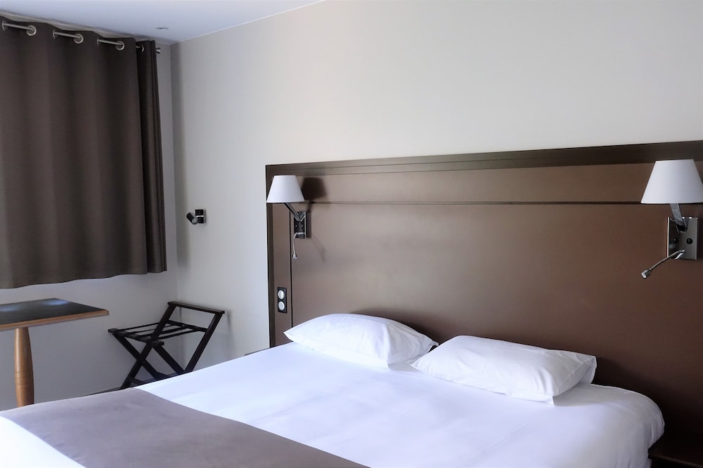 Logement dans la partie de l’hôtel "grand confort" Très bon accueil . chambre pour trois avec une cloison de séparation entre le grand lit et le lit en 90 . 2 Tv ( une pour chaque lit ) . le parking est comme un motel : devant la chambre .