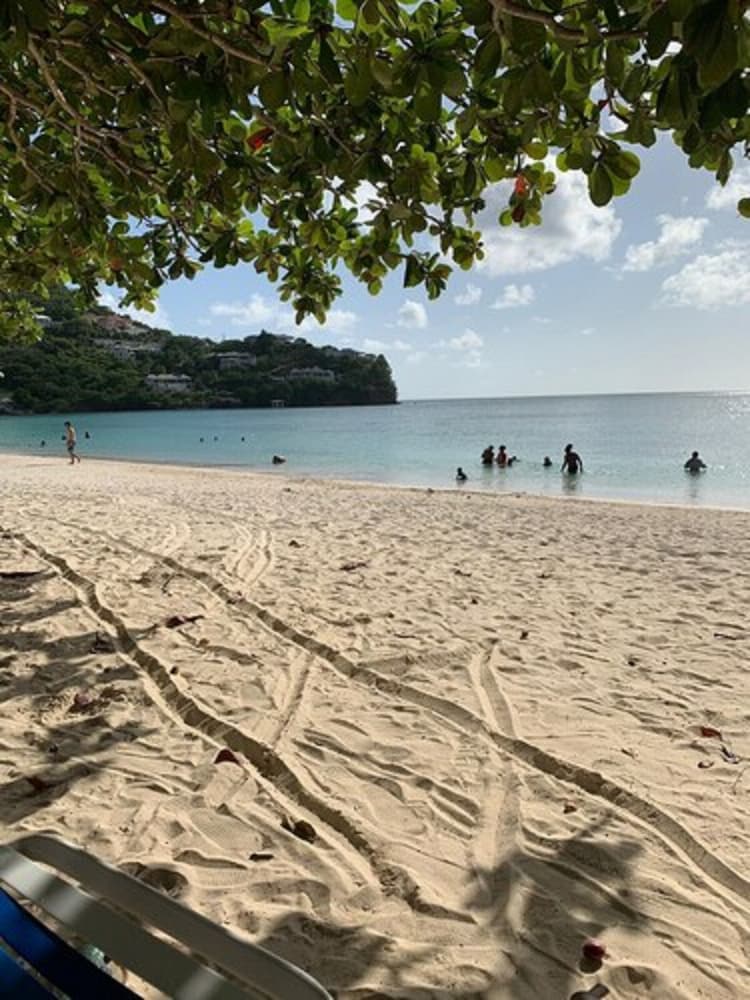 Great value for money. Wonderful view of the beach from top floor apartment. All amenities, comfortable bed and spacious and clean. Friendly and helpful staff. Location tucked away but nice walk to Grand Anse beach and mall. My husband and i stayed 4 nights and had a very restful and romantic stay.