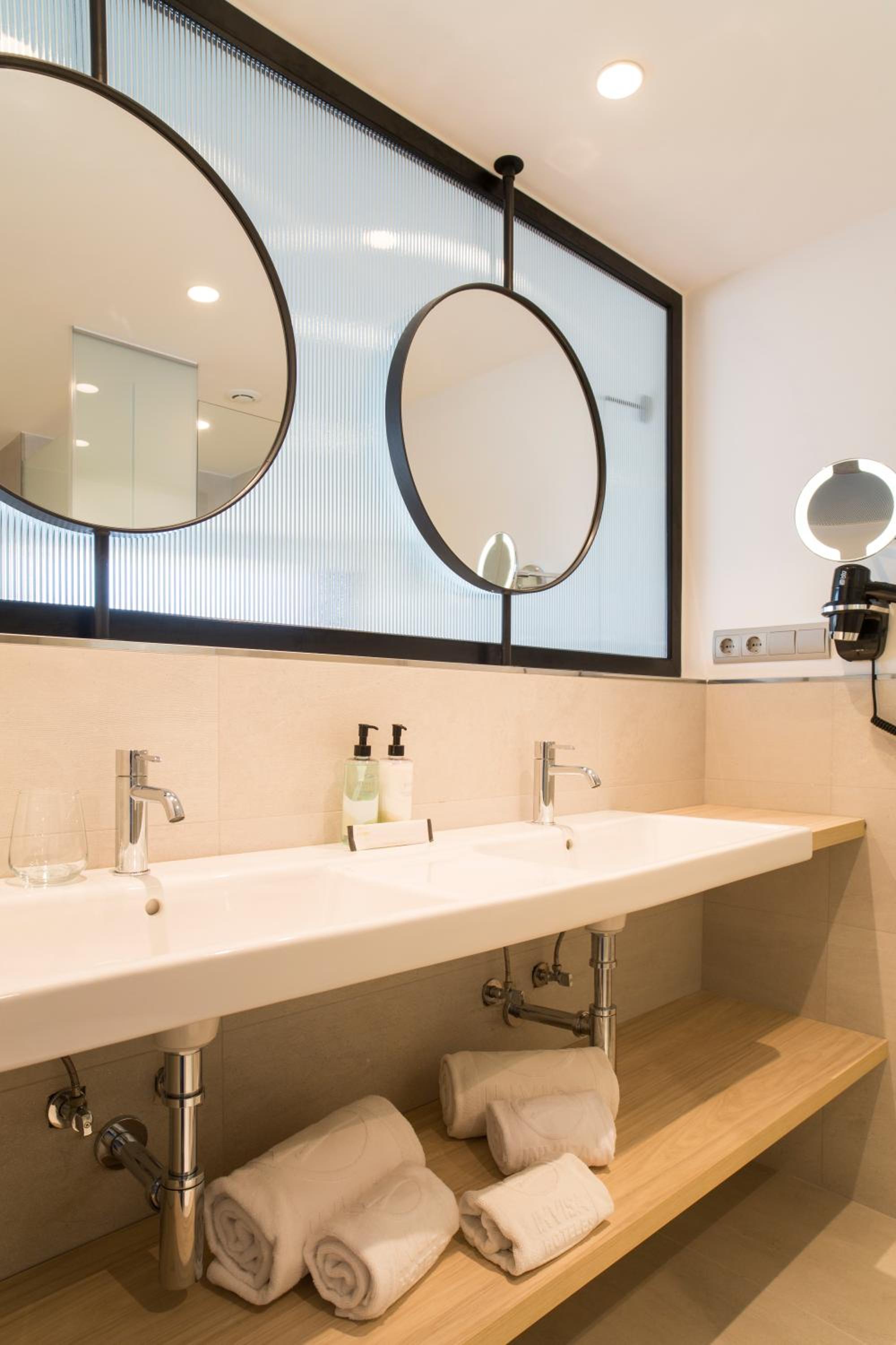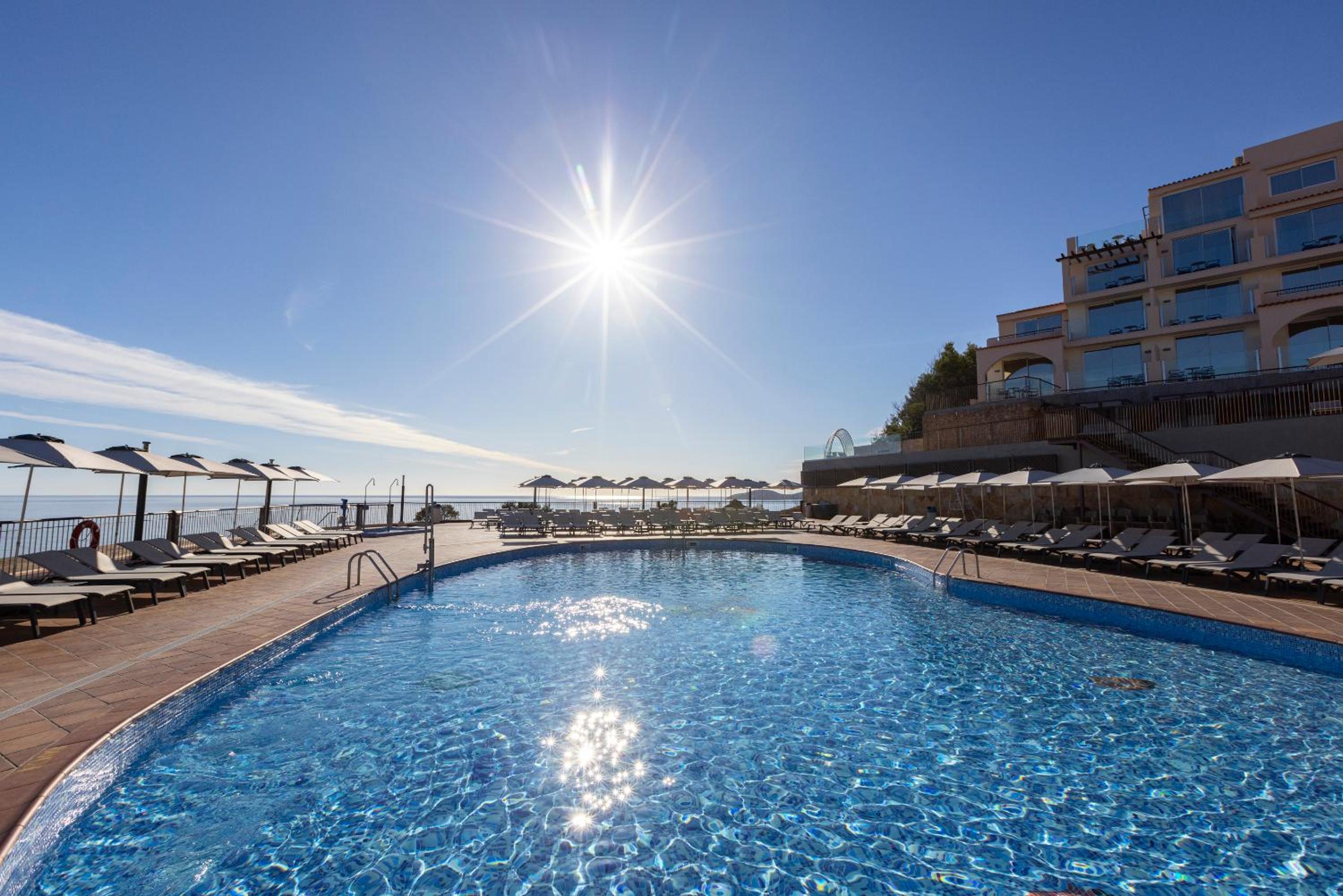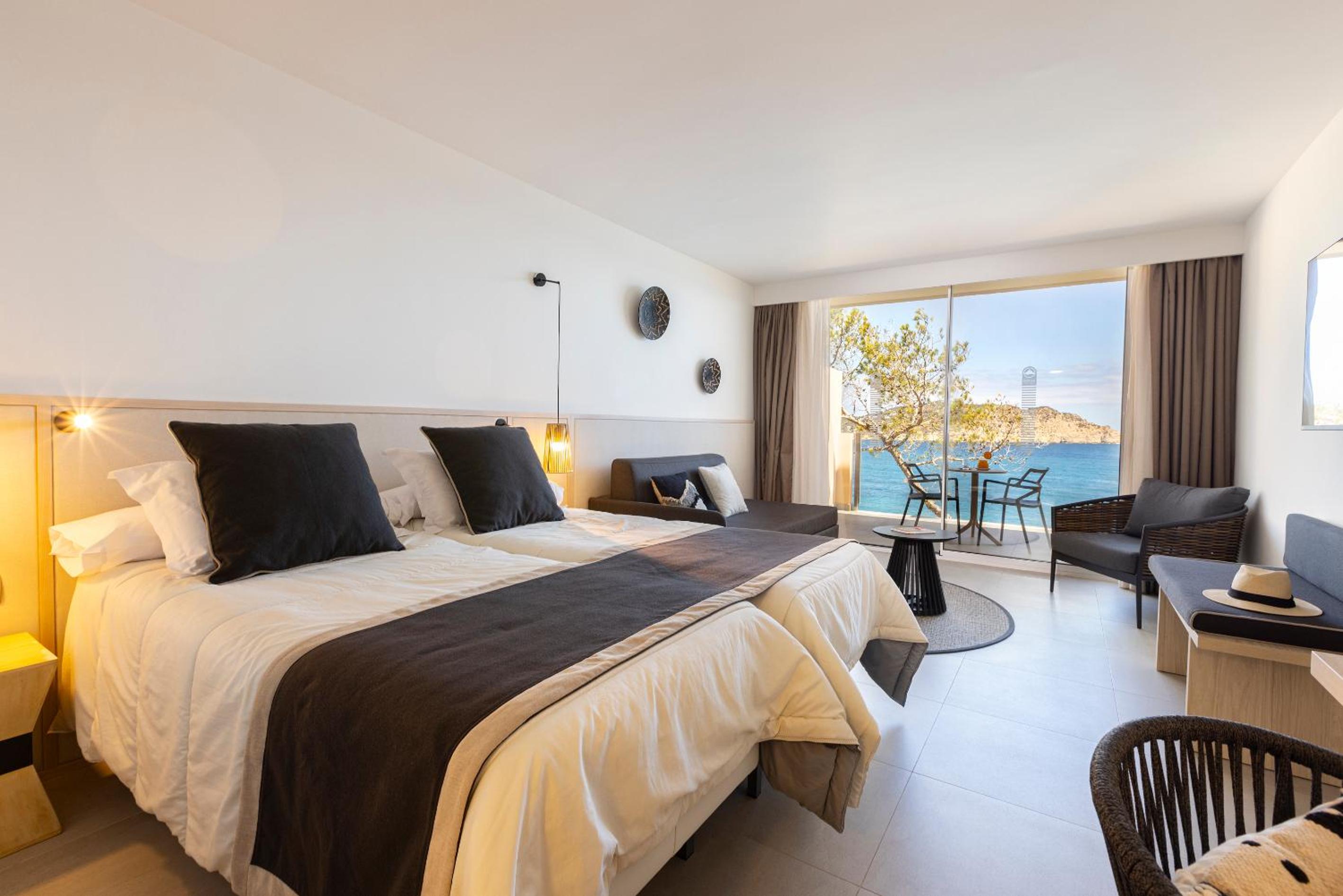 Enjoy breathtaking views of Es Figueral beach and the bay from our sun terrace and outdoor swimming pools.