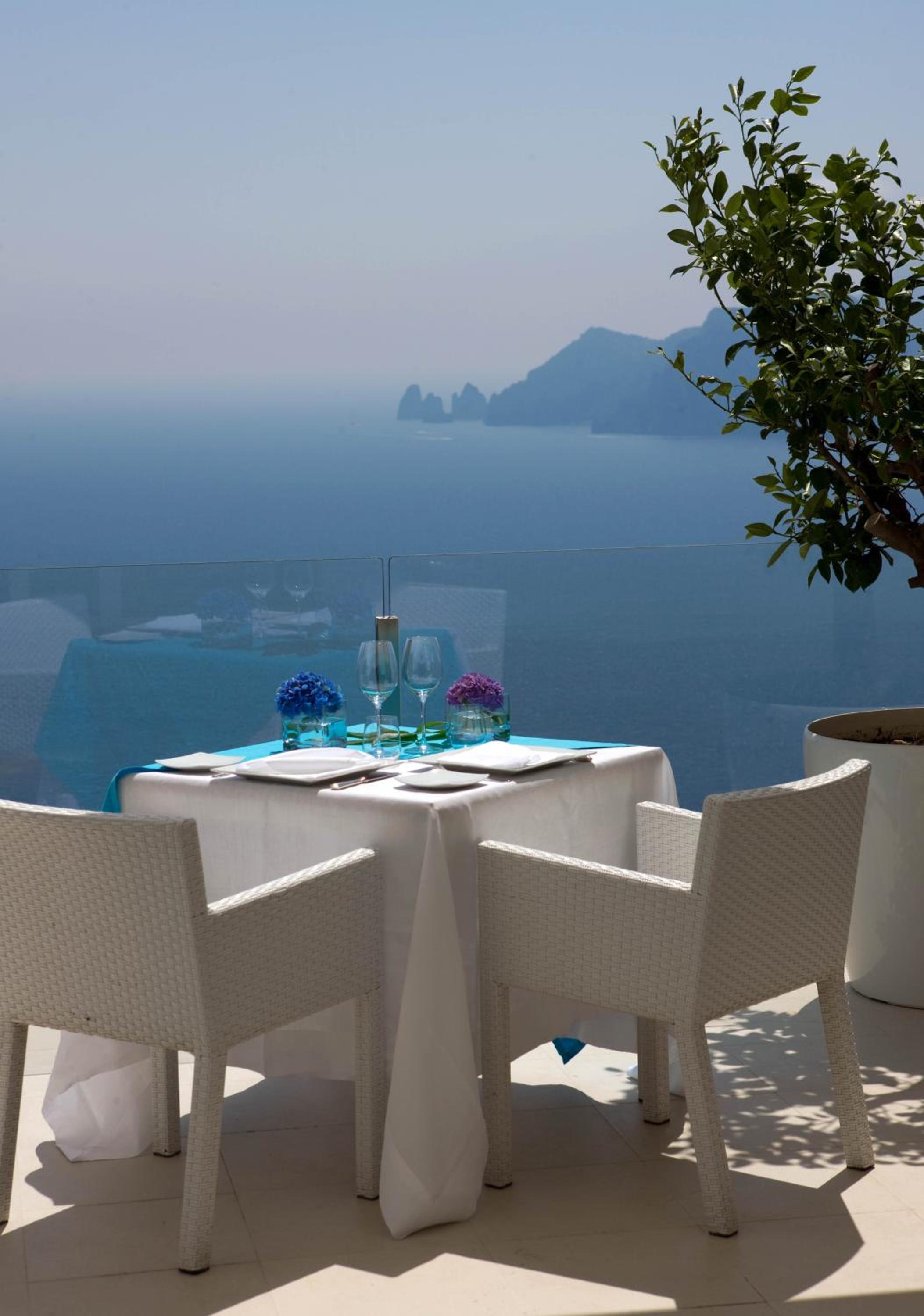 Relais Blu is a very special property. We arrived at sunset, and the view overlooking Capri from the rooftop lounge was among the most beautiful views my wife and I have seen. The service and food at the hotel are exceptional. The pasta a la Nerano was one of the best pasta dishes I have had. Breakfast was likewise excellent with fresh orange juice and a full spread of fruits, eggs, and pastries. In addition, we were able to ride the complimentary shuttle to and from Sorrento which made accessing the hotel very easy.