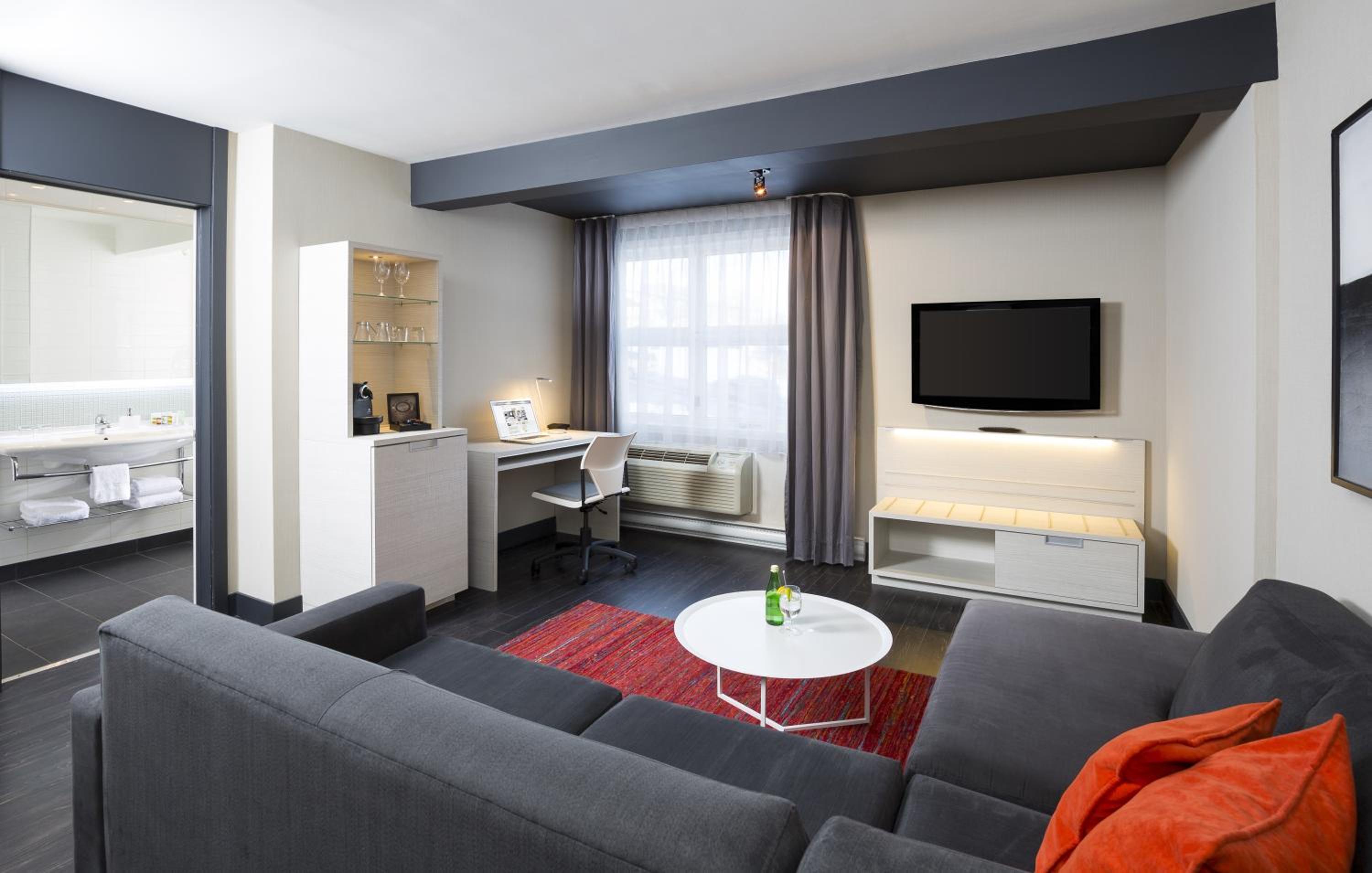Luxurious Room Features: Each guest room includes a 37-inch flat-screen TV, iPod docking station, free movies, Nespresso coffee machine, and a luxurious bathroom with upscale bath amenities and a glass-enclosed shower.