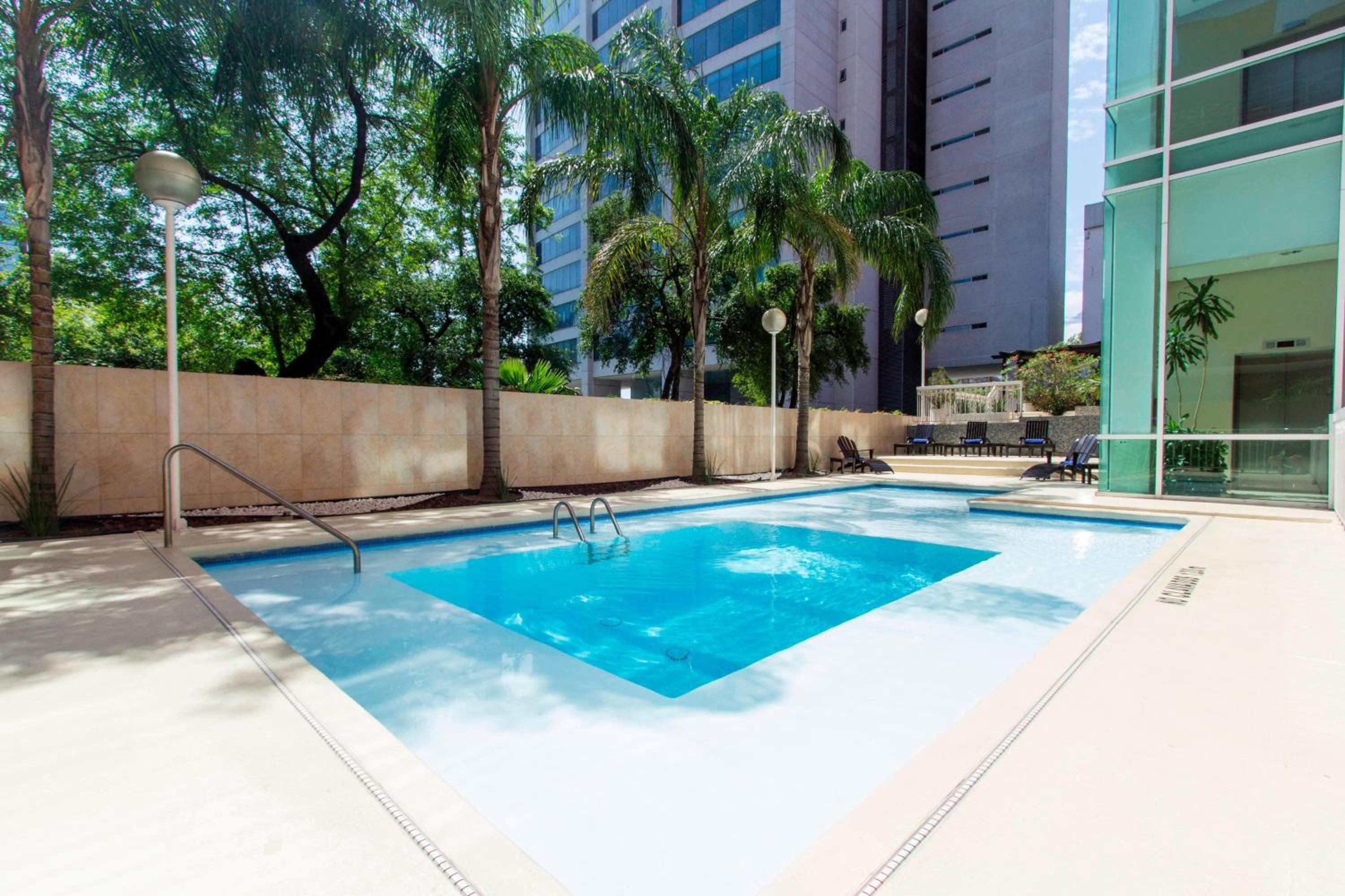 This modern hotel boasts an outdoor swimming pool, a well-equipped gym, and spacious, air-conditioned rooms with flat-screen satellite TV and free wired internet. Guests can relax in style and enjoy a comfortable stay in Monterrey's historic centre, just a 10-minute drive away.