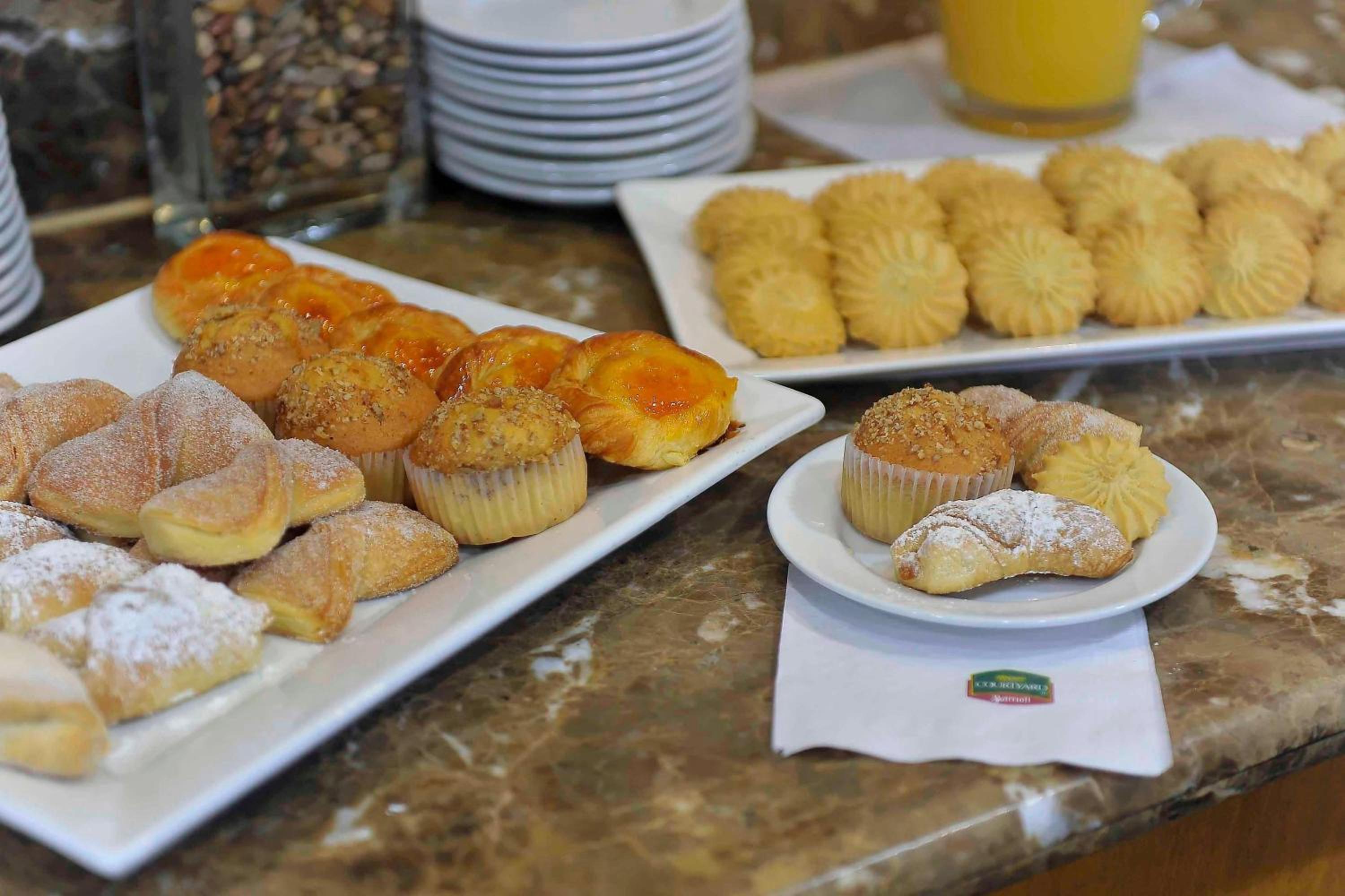 Indulge in international cuisine at the Courtyard Café restaurant, serving delectable dishes all day. Unwind at the lounge bar with a variety of drinks and snacks, all while staying connected with free Wi-Fi access. Book your stay at Courtyard Monterrey San Jeronimo for a memorable experience.