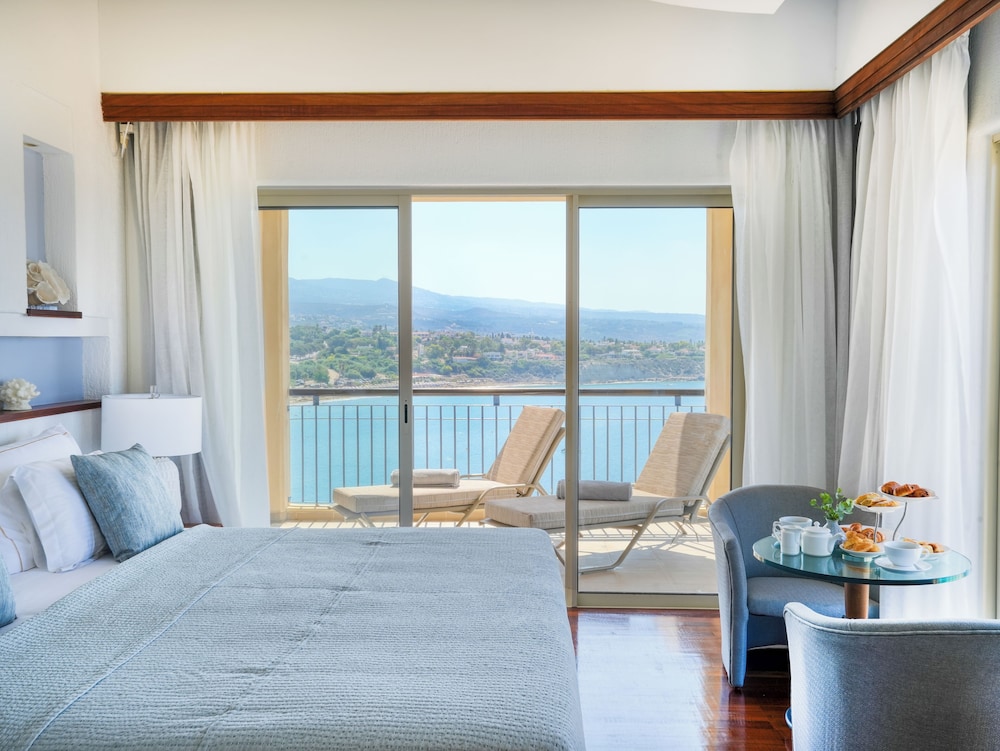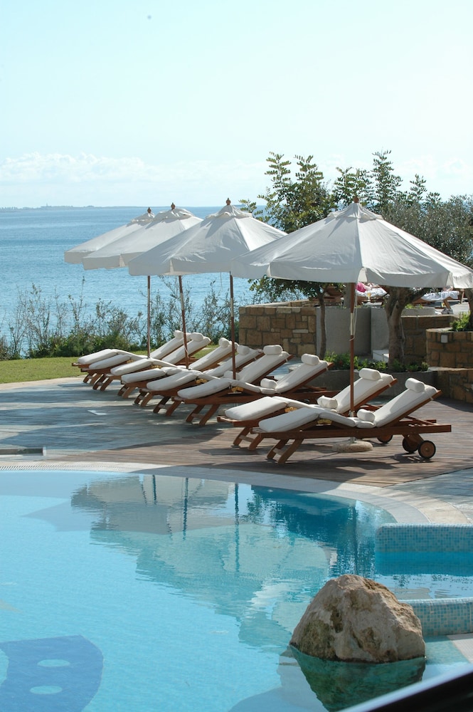 A lovely hotel on a peninsula with great sea views. This hotel is a bit remote from any major town, a bus ride or taxi is necessary. I love this hotel because there is no pop music playing anywhere and a dress code is expected in the restaurant at evening meals. As it should be for a 5 star hotel. My room was cleaned daily, the food is excellent, the facilities are great but what makes this hotel work is the staff. I need to thank the manager,Suminder and Panayotis on reception. Himal for always smiling,Larisa for her elegant charm, Stella and Dawan always attentive, Naome for keeping our room clean. Not forgetting catering, maintenance and the lobby boys. A wonderful three weeks in a fantastic spot.