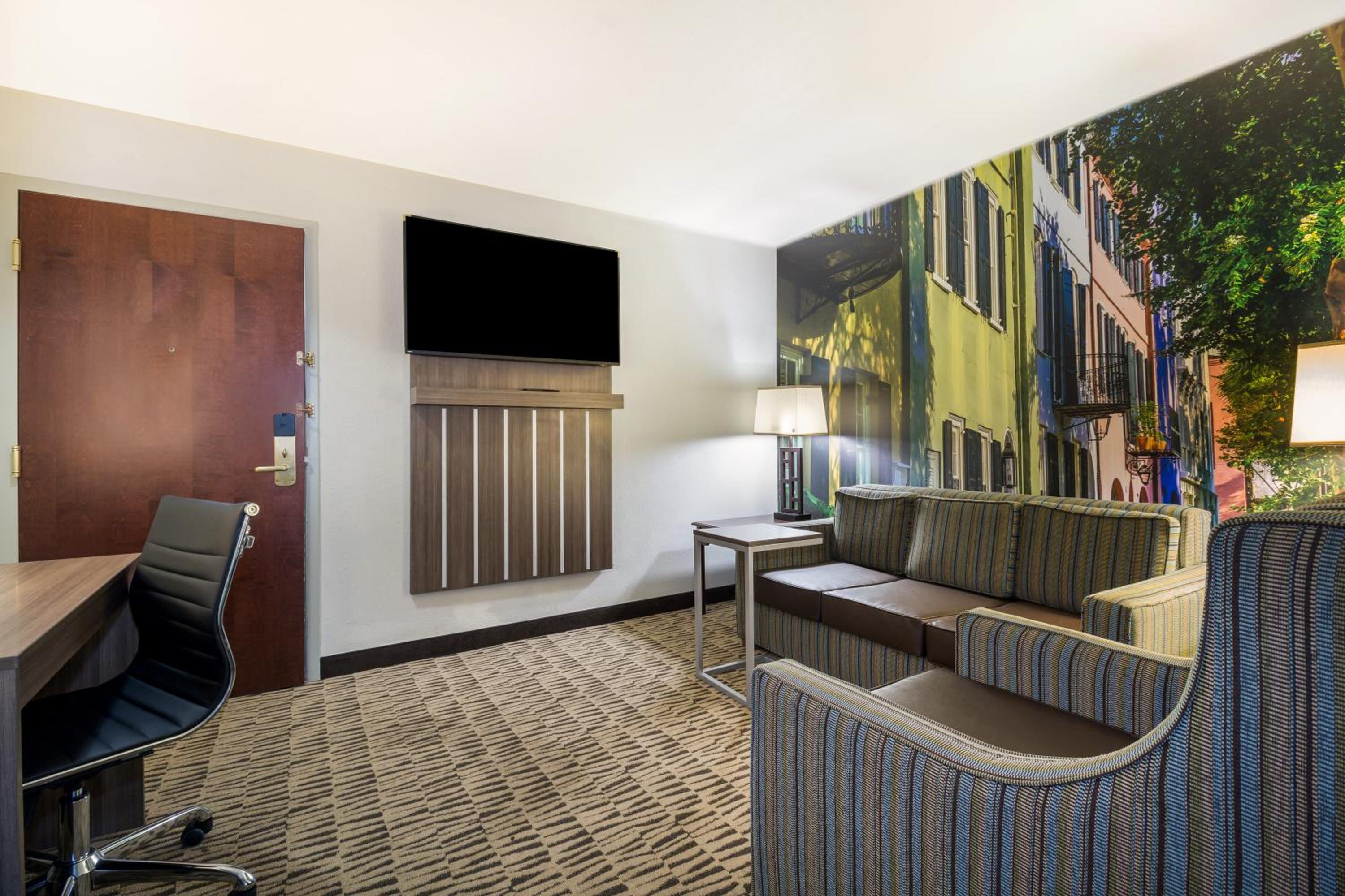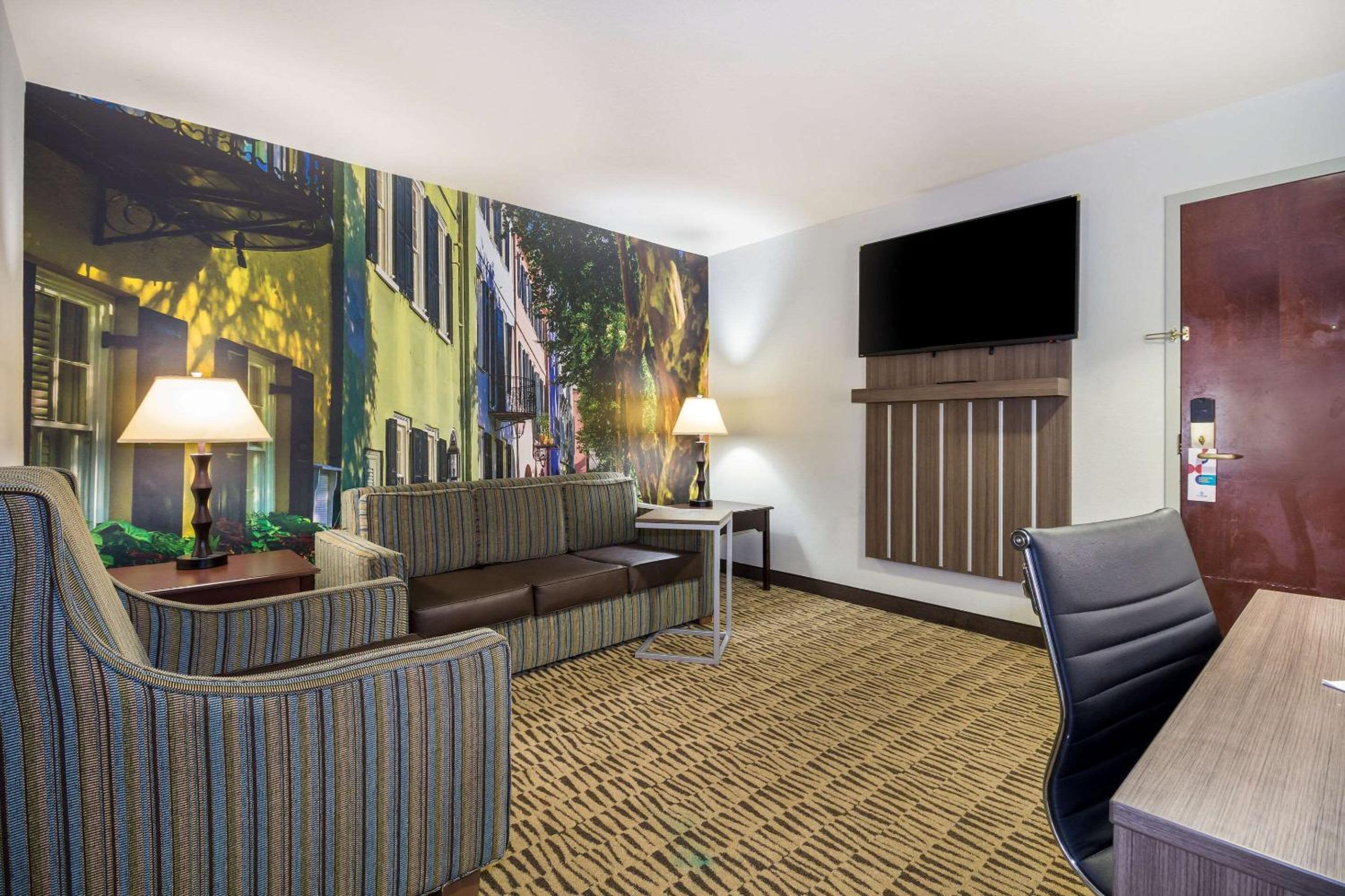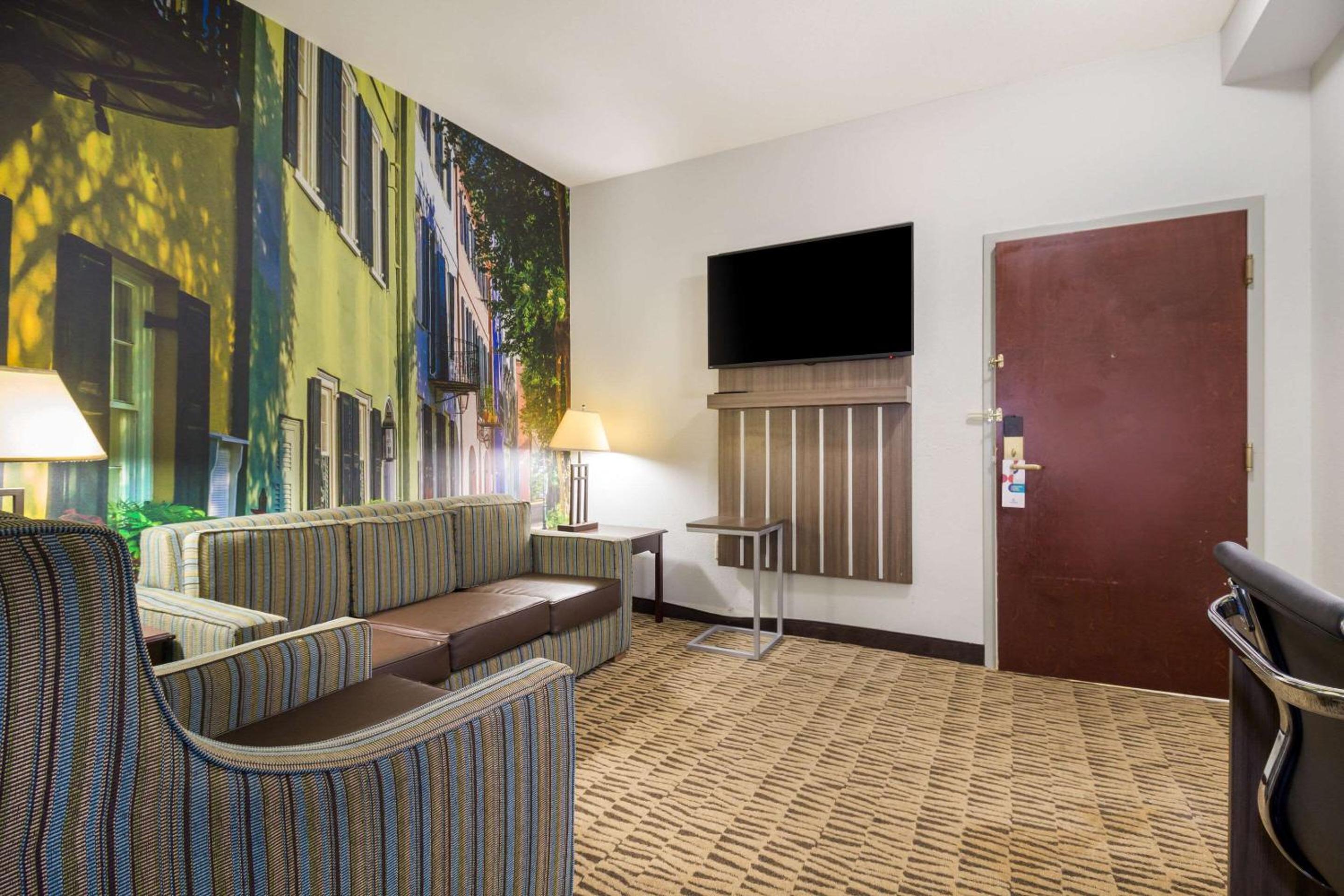 Enjoy the convenience of free WiFi, a kitchenette, two 50-inch flat-screen TVs, and a separate living room in every spacious suite at Clarion Pointe Charleston - West Ashley.