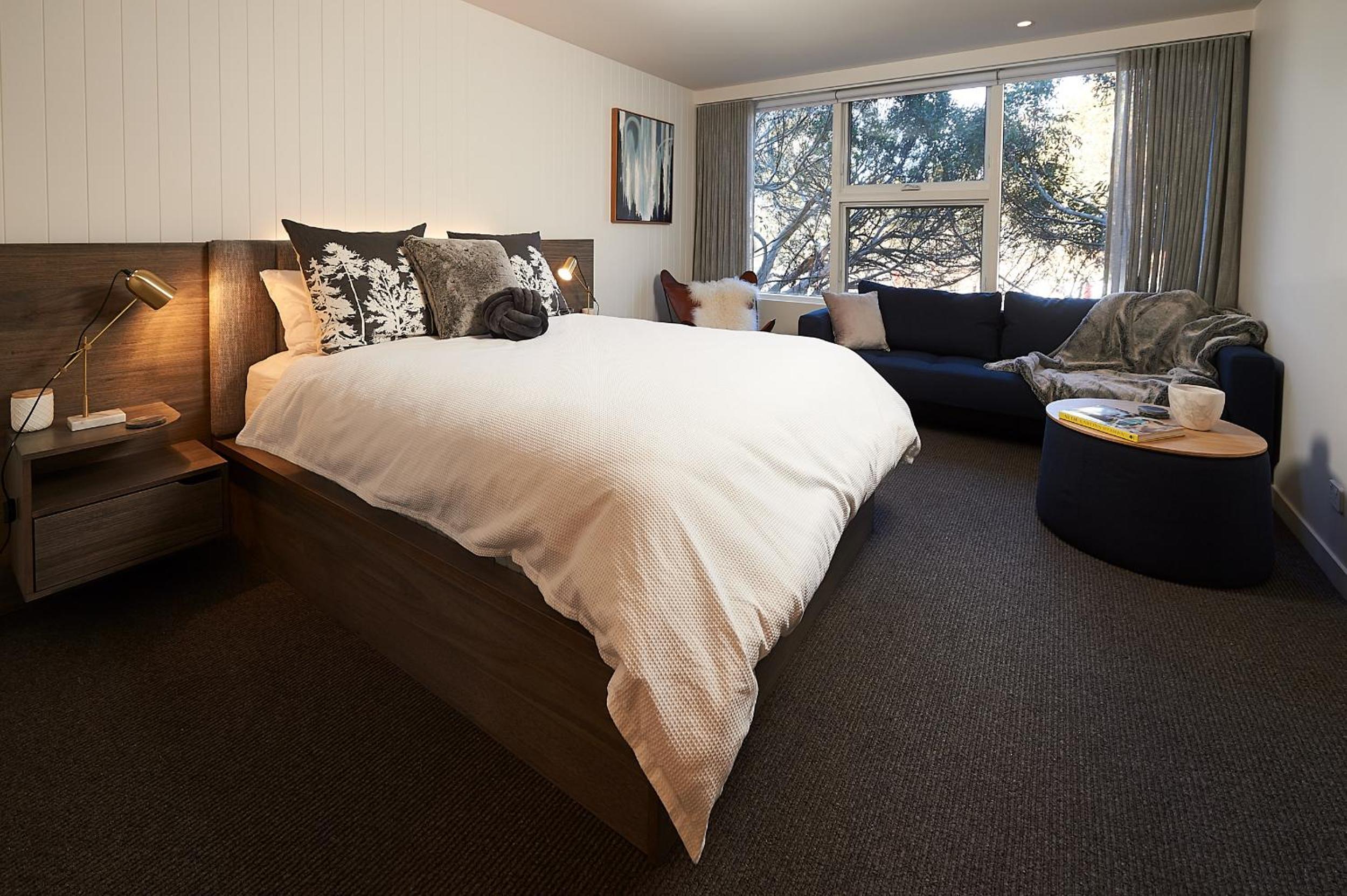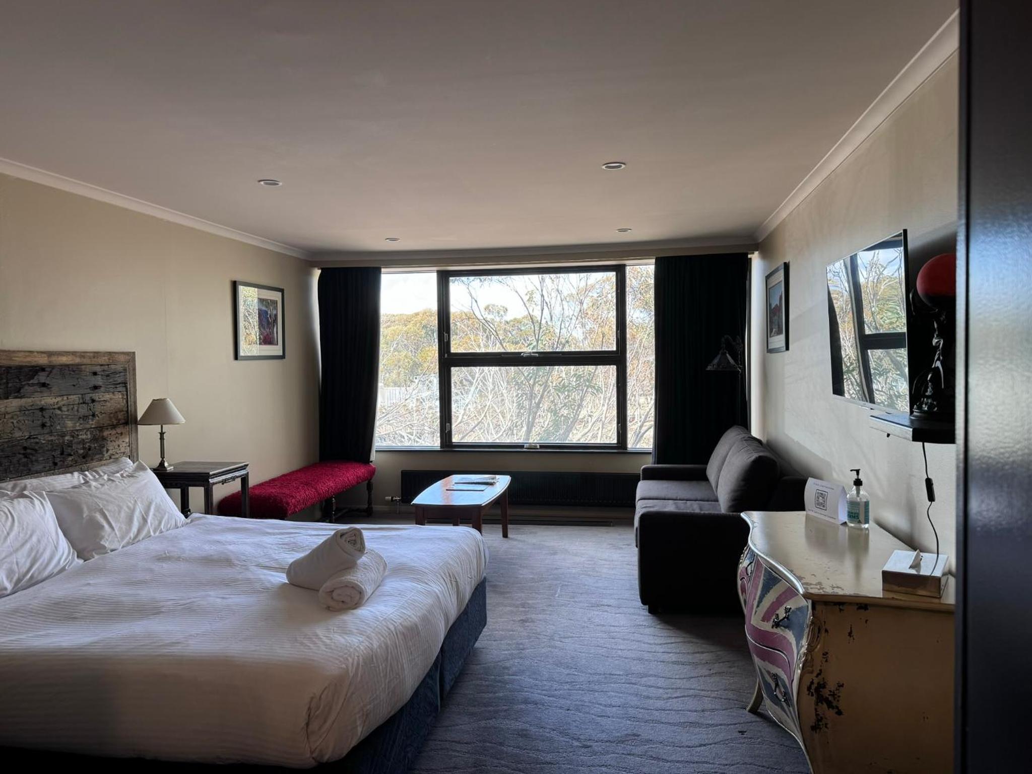 Indulge in the cozy rooms at Mt Buller Chalet Hotel & Suites, each equipped with heating, plush sofas, and modern bathrooms with complimentary toiletries. Upgrade to a room with a fireplace for the ultimate relaxation experience.