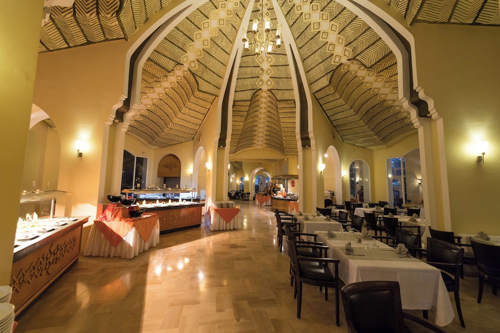 C'est formidable de pouvoir manger dehors, de choisir à quelle heure nous désirons manger, il y a toujours quelque chose, toute la journée. Un serveur passe nous voir à la mer pour nous servir une boisson. Il y a le buffet du soir qui est très bien aussi avec des grillades à l'extérieur. La possibilité d'aller dans un restaurant et de choisir un menu une fois dans la semaine ou le plaisir de manger dehors vers la piscine midi et soir. Les serveurs sont très sympa, làbas, ça fonctionne avec une petite pièce, c'est dans leur coutume, si vous leur donner 2 dinars (0.60 cts euros), ils s'occupent à merveilles de vous. Le personnel est très chaleureux