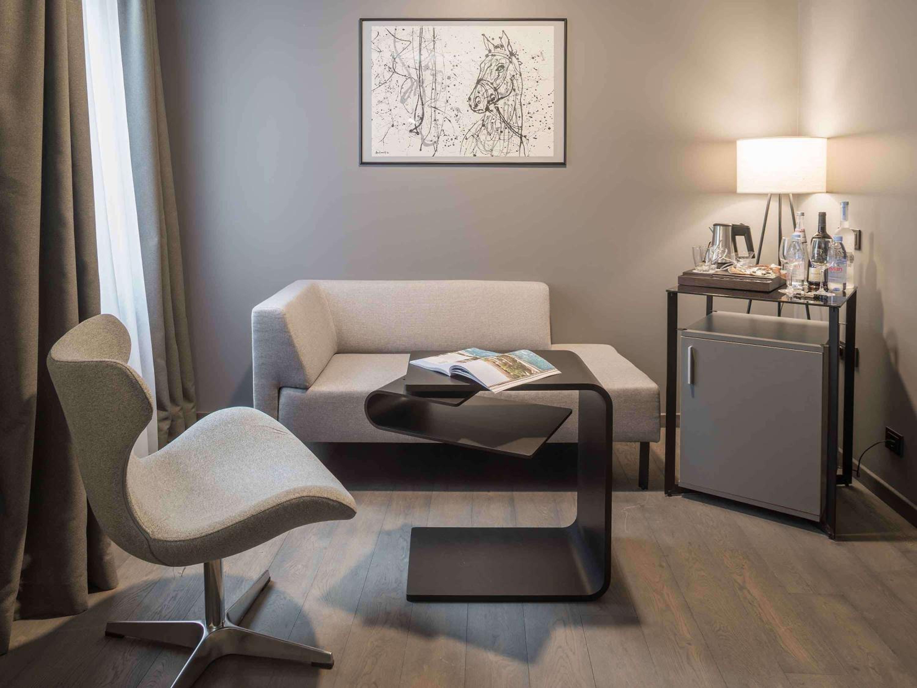 The size of the room is pretty standard, but there are small touches you rarely find in other hotels and that makes it exceptional, like included capsule coffee machine, tea pot, very nice wine glasses. (Wine is there too, but not included) Of course large TV with nice TV channel choice.