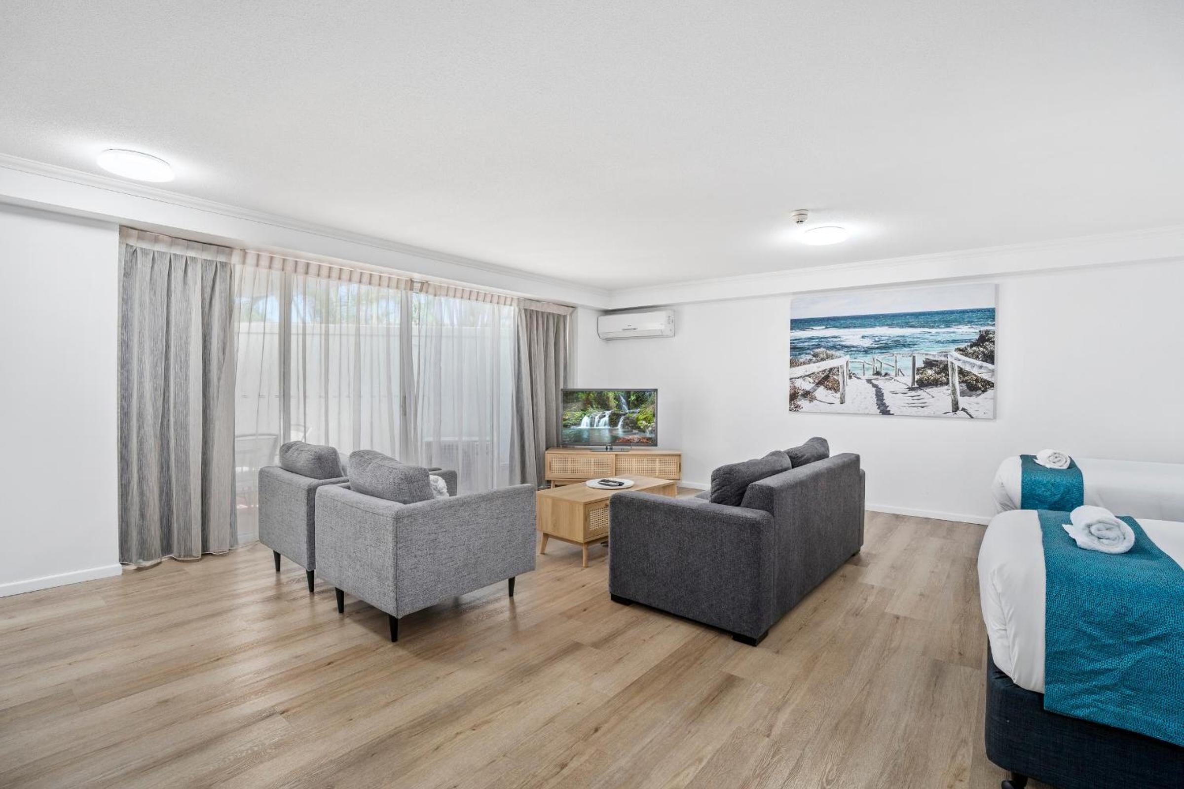 Sovereign on the Gold Coast offers stylish private rooms and suites equipped with modern amenities like a dining area, TV, and tea/coffee making facilities. Indulge in the comfort of air-conditioned rooms, with some even boasting a balcony or a relaxing spa bath.