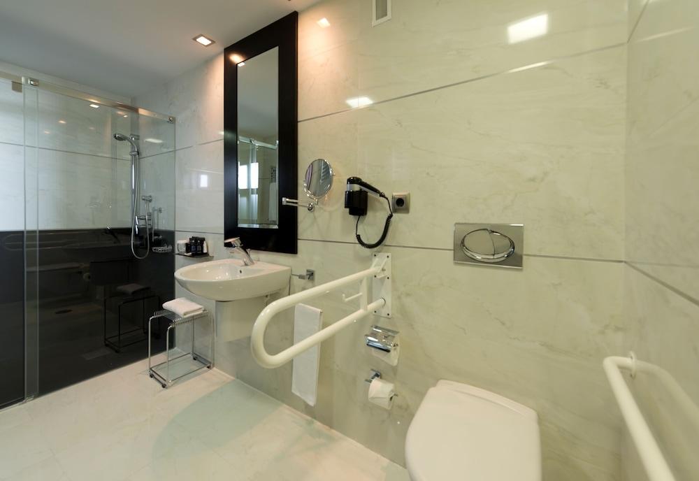 Hotel is very modern, clean and comfortable. Infinity pool on the roof deck was awesome. Centrally located property walking distance to train station 5 min and city center 7 minutes. Rooms are spacious and comfortable. Staff is friendly and speaks. Breakfast buffet is great.