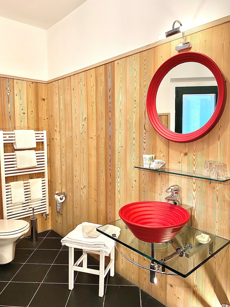 Sehr schönes Zimmer mit großem Bad zum einladenden Garten hin. Gutes Frühstück mit lokalen Produkten. Der Weg zum Hotel führt vom Lago di Lugano über eine sehr steile, enge und kurvige Straße. Die Umgebung ist insgesamt nicht überaus attraktiv.