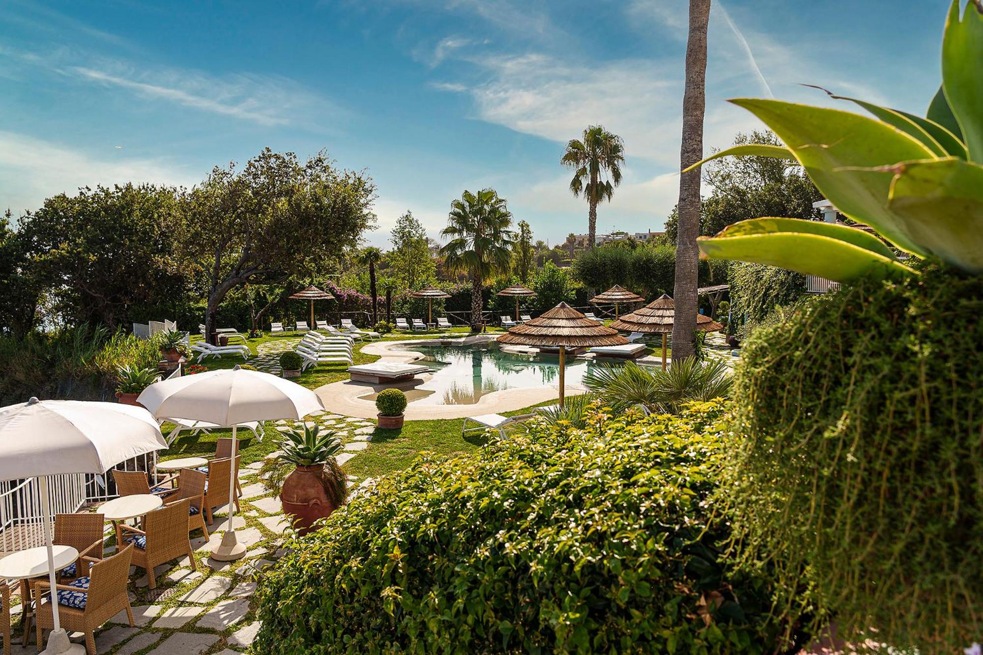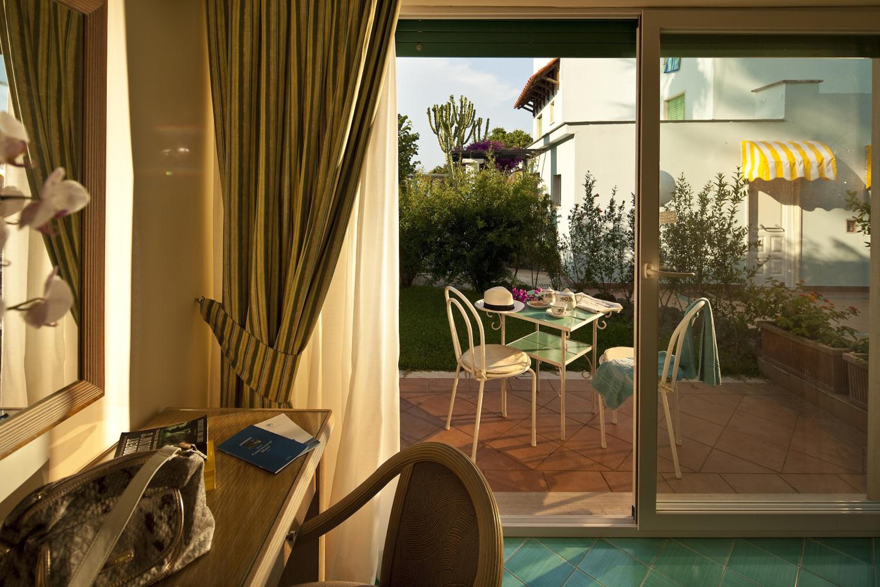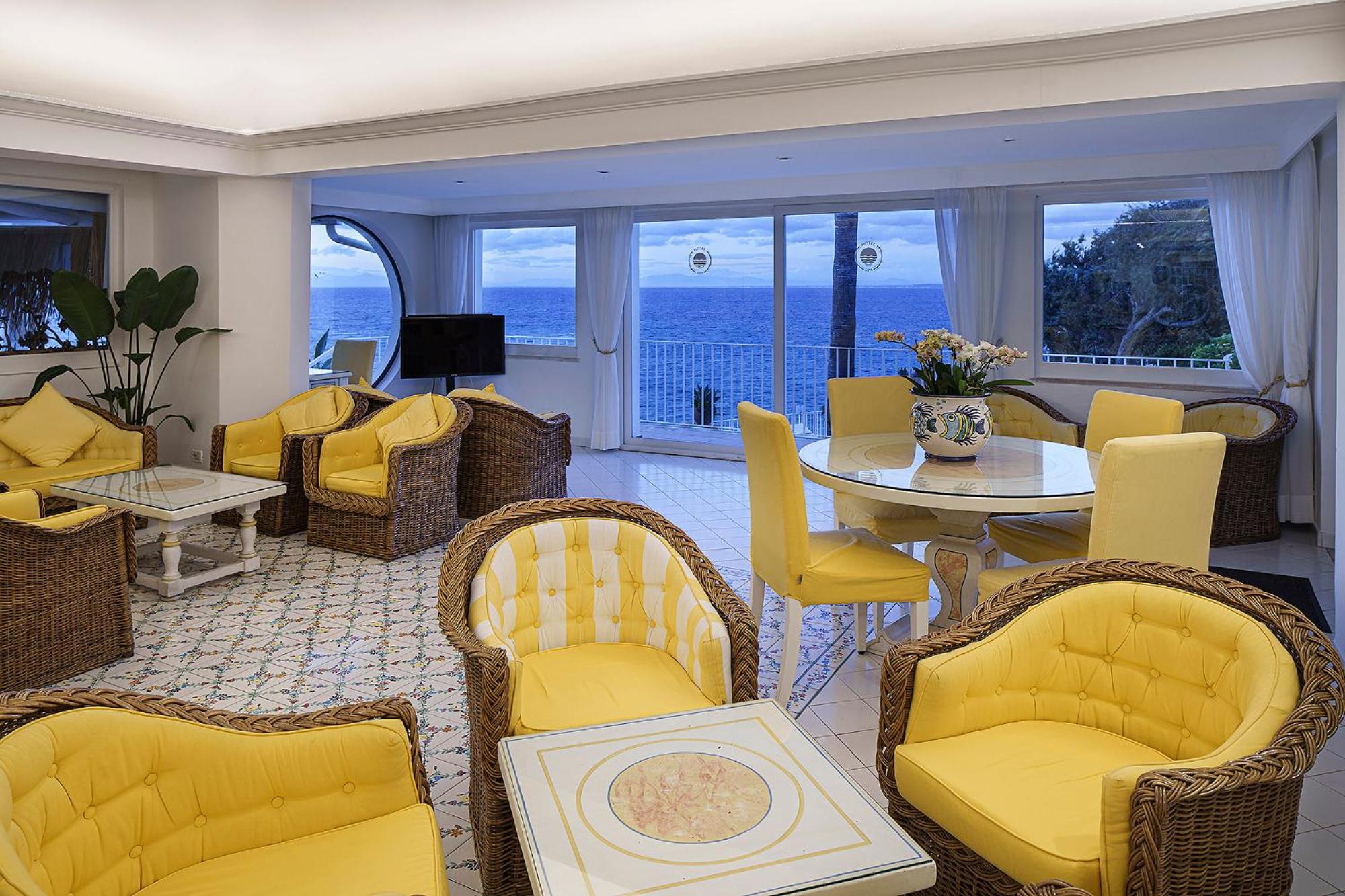 Perched on a cliff overlooking the Gulf of Naples, Hotel Continental Mare offers a serene escape with its lush garden and thermal pools. The rooms, adorned in calming hues, provide either garden or sea vistas along with modern amenities like satellite TV and balconies.