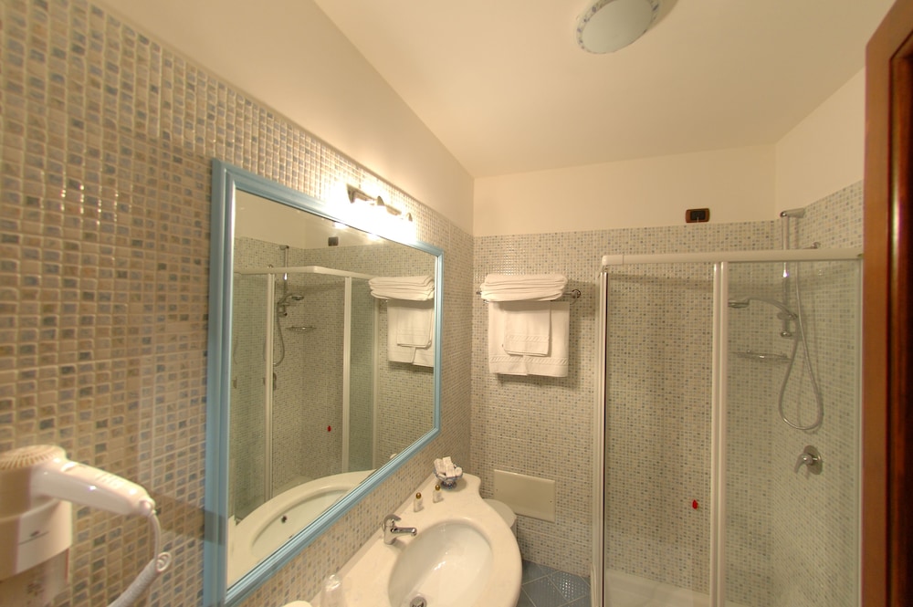 This hotel is in two parts and their website only really covers the other part - The "Wellness" hotel. That part is very modern and has excellent facilities that residents of both parts can use. However, the "Hotel" refers to the older part. One of the staff said that this is in fact only 4 star and its facilities would suggest this. The room we had was in fact a conversion of another, non-bedroom, type of room, maybe a conference room? The conversion had been done well but lacked a few details, most importantly on the safety side. There was no telephone and no fire sensor or break glass alarm point so if someone fell ill during the night, had a fire or an intruder, there was no way of contacting the staff without a 100 yard + walk. I raised my concerns about the lack of safety facilities and was told that it complied with Italian law. That maybe be the case but it is not what one would expect. Other major annoyance was the number of flies around both properties, being worst at the older part.