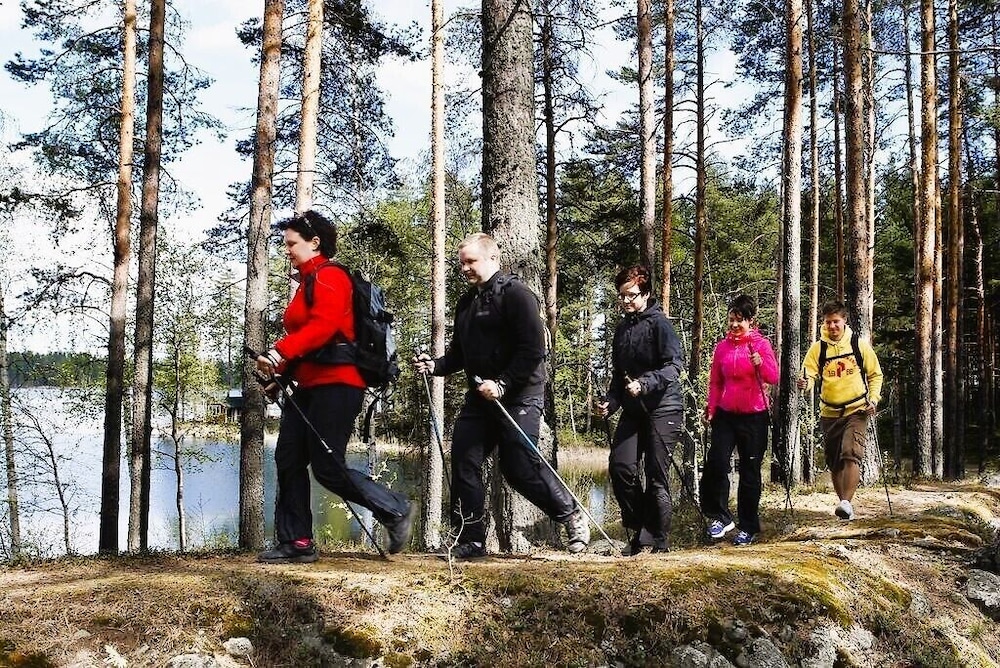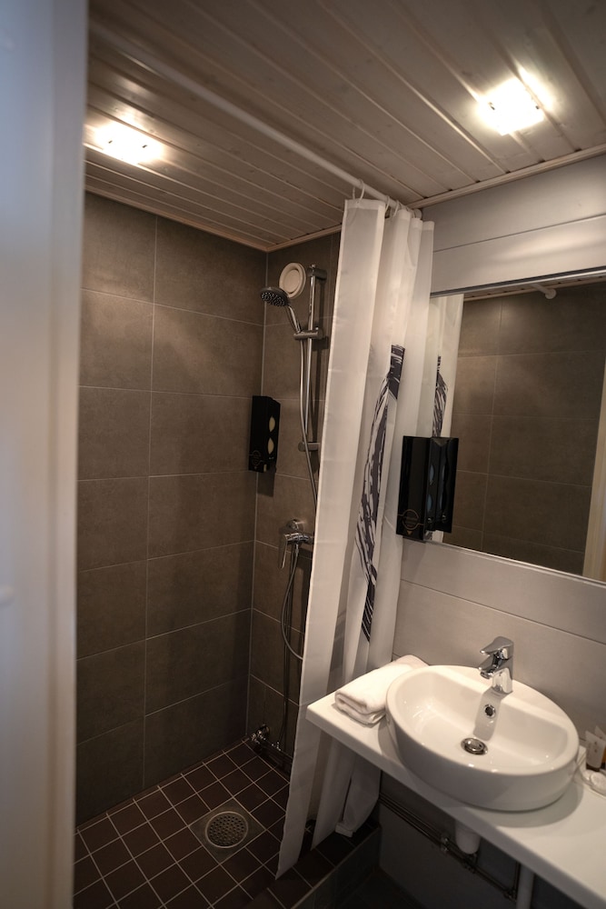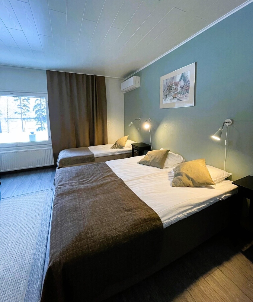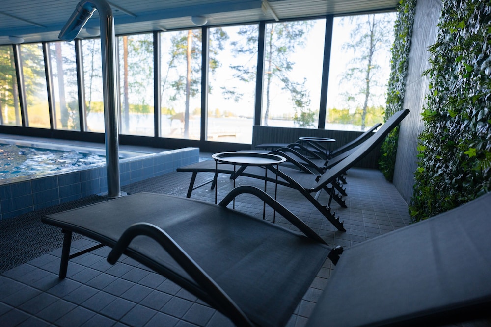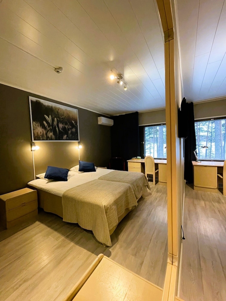 Kokonaisuuteen nähden kovasti ylihintainen, henkilökunta ystävällistä, tilat siistejä, saunaosasto mukava ja vesi miellyttävän lämmintä. Huoneissa ei ollut baarikaappia/jääkaappia, huoneen molemmat(!!) yövalot olivat pimeinä, telkkari pieni ja vanhanaikainen, aamupala hintaansa nähden vaatimaton: Molemmat mehut loppu, muna-nakki-pekoni kaikki kylmiä ja leipävalikoima surkea ja sekin mitä oli, kuivaa. Lopuksi tulleet karjalanpiirakat pelastivat hiukan. Vain yksi henkilö (yritti kyllä parhaansa) hoitamassa kaikkea tätä, joten siksi ymmärrettävää.