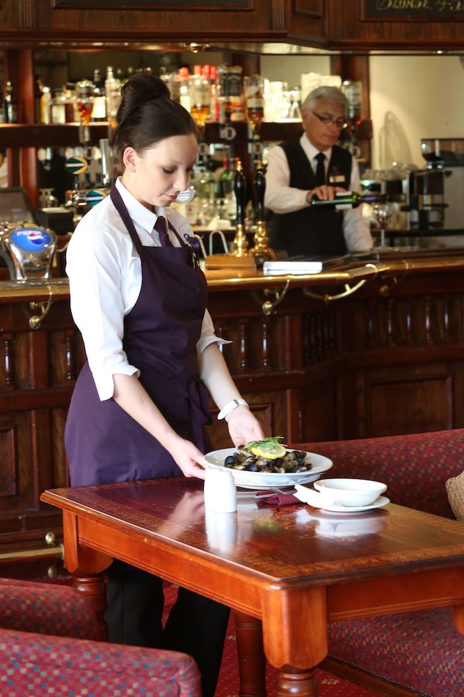 Olde Worlde charm, sumptuous wood panelled lounge, bar and nice restaurant with good food.