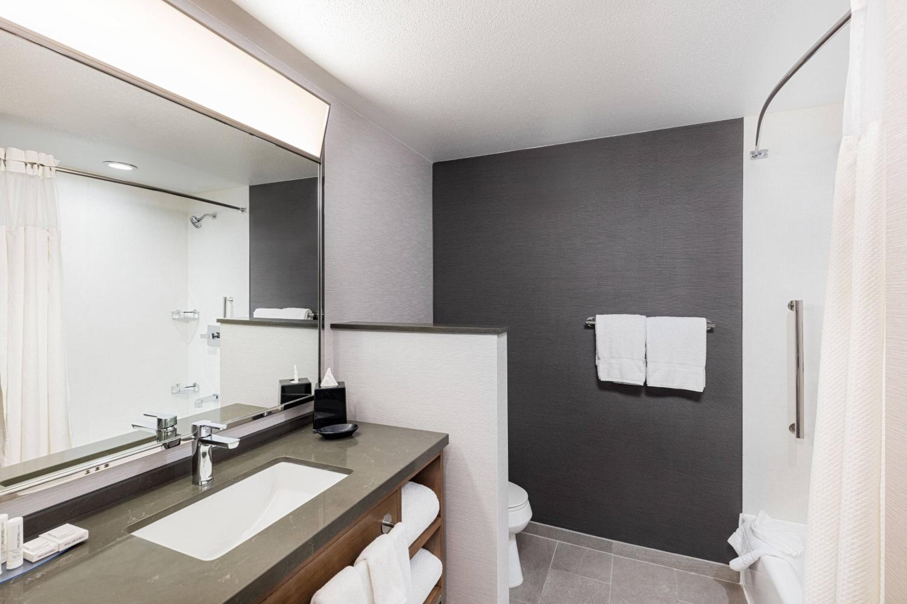 Literally everything! The staff was so amazing and accommodating. My husband and I actually were checked into a different hotel but after about an hour we immediately had to check out due to the lack of cleanliness and comfort. when we found a room available at Courtyard Marriot the staff was so kind and so awesome in making sure that we felt comfortable and cared for. The staff member, Travis, is excellent! He went out of our way to ensure that we felt taken care of!