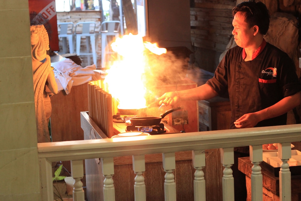 The staff was however very tender and the restaurant, with both breakfast and dinner, filled its purpose. Get the coffee from the Kopi next door tough. Great location right by the beach and minutes away from the boats to Lembongan.