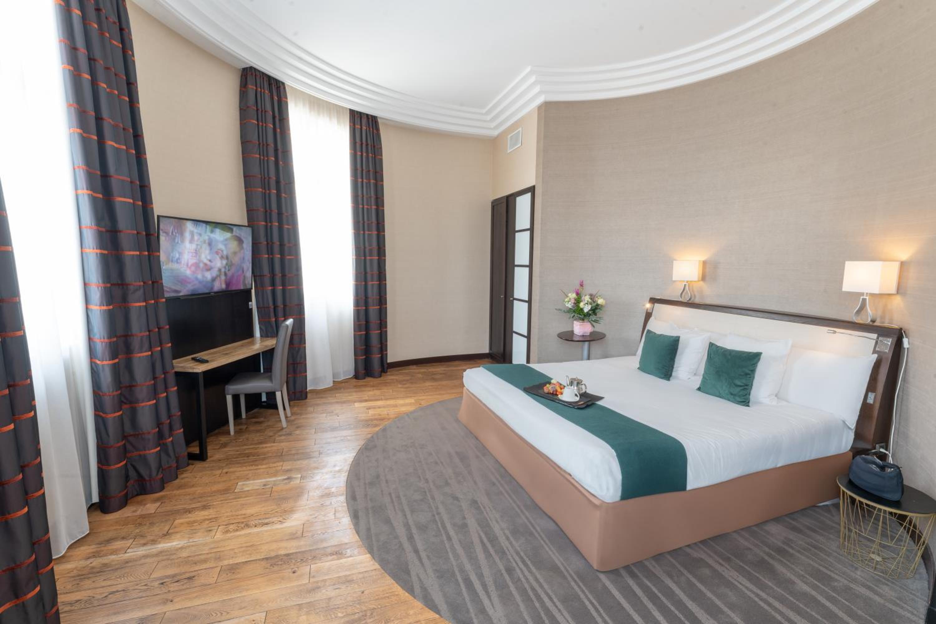Elegant Accommodations: Enjoy air-conditioned rooms with modern amenities, including flat-screen TVs and free WiFi, offering views of the city or the serene internal courtyard.