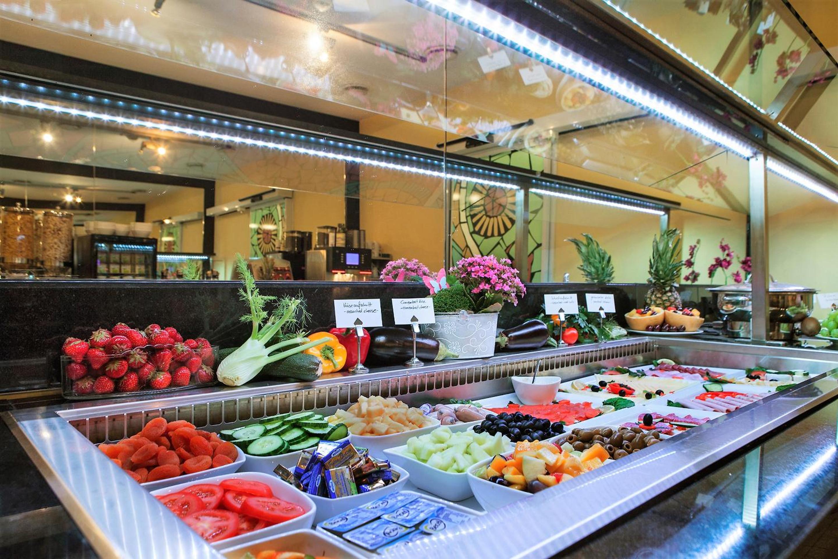 Relax in the sauna, stay fit in the fitness centre, or indulge in a soothing massage upon request. Start your day with a delicious buffet breakfast and savor international cuisine at the vibrant Sushideo Restaurant, inspired by Friedensreich Hundertwasser's colorful style.