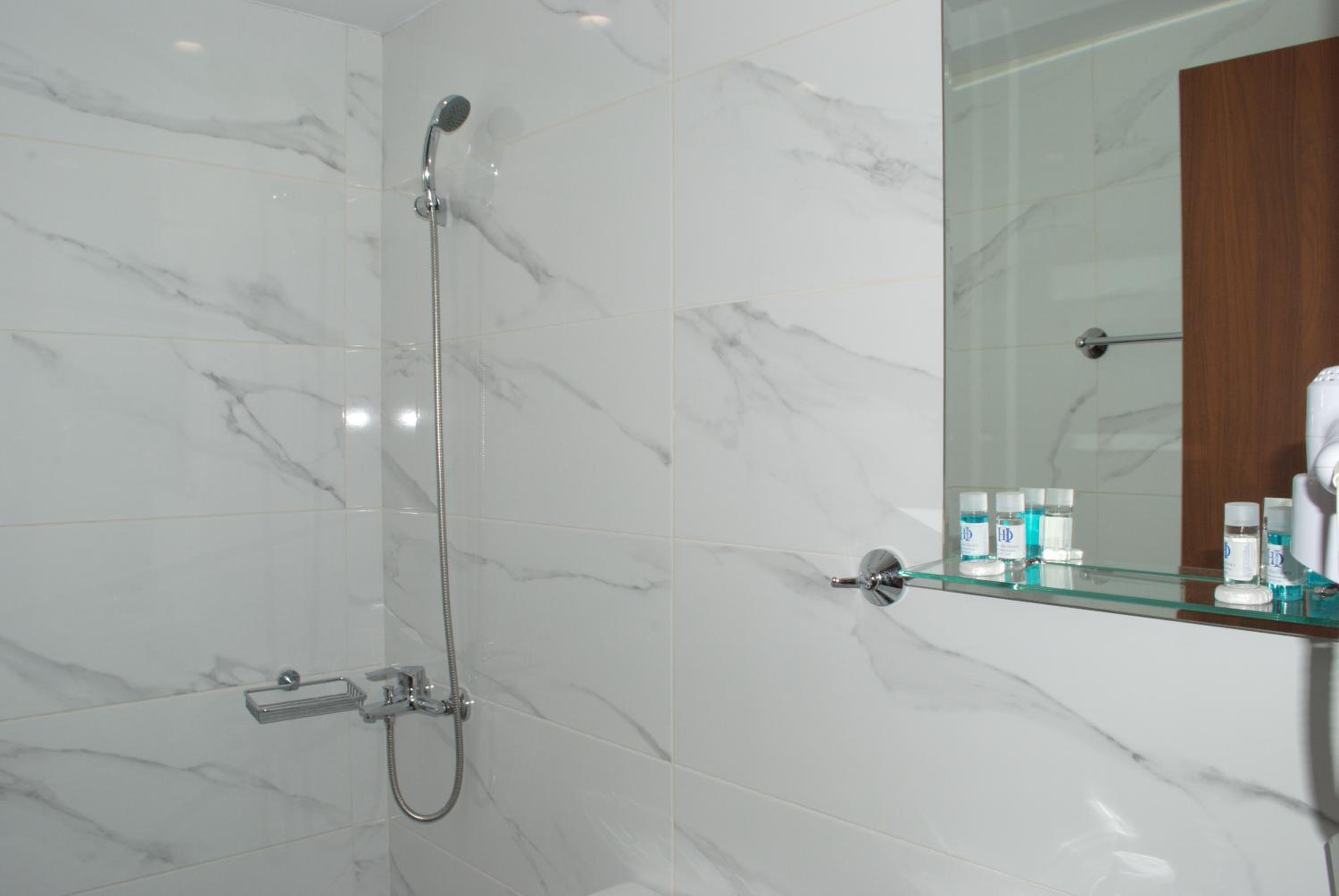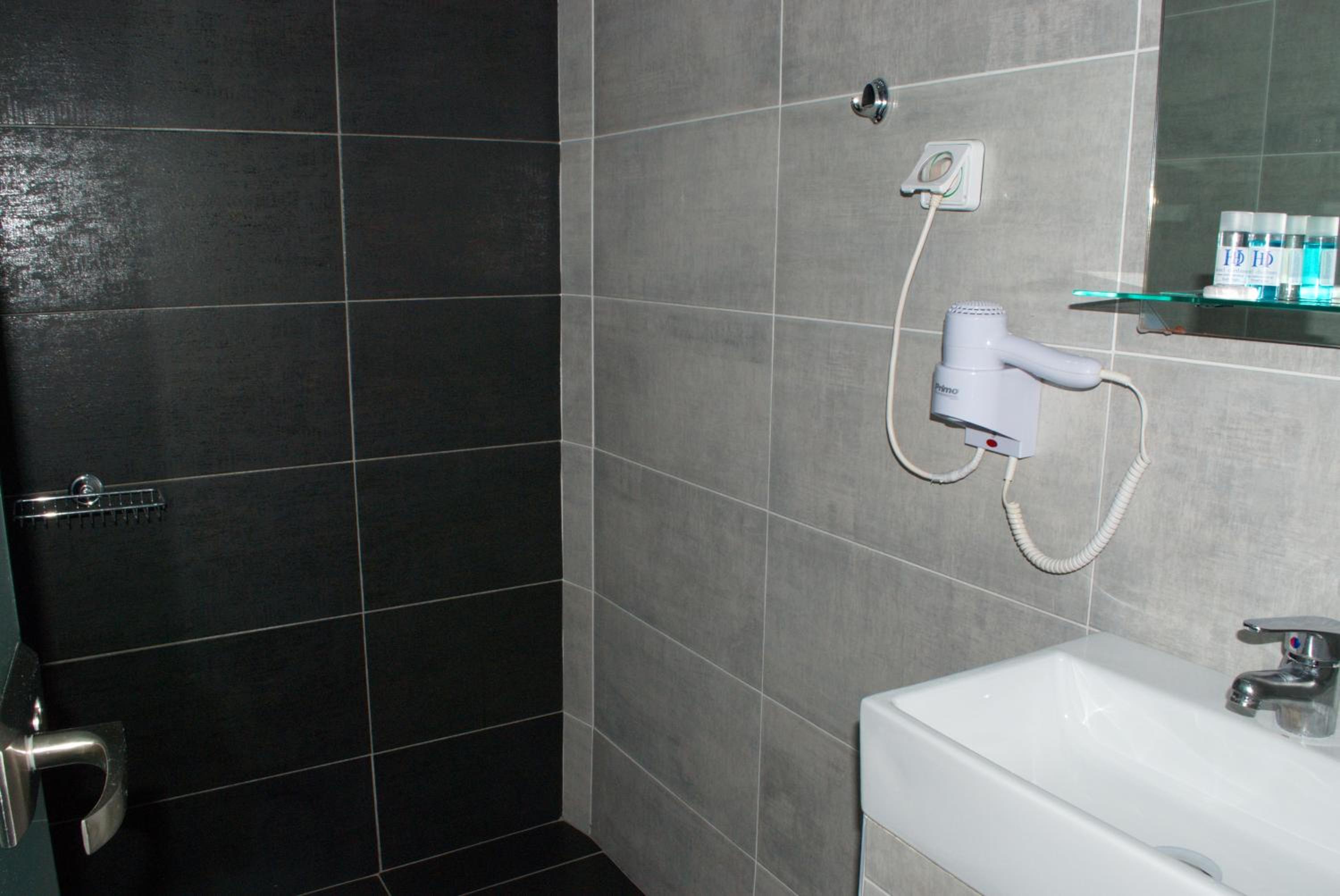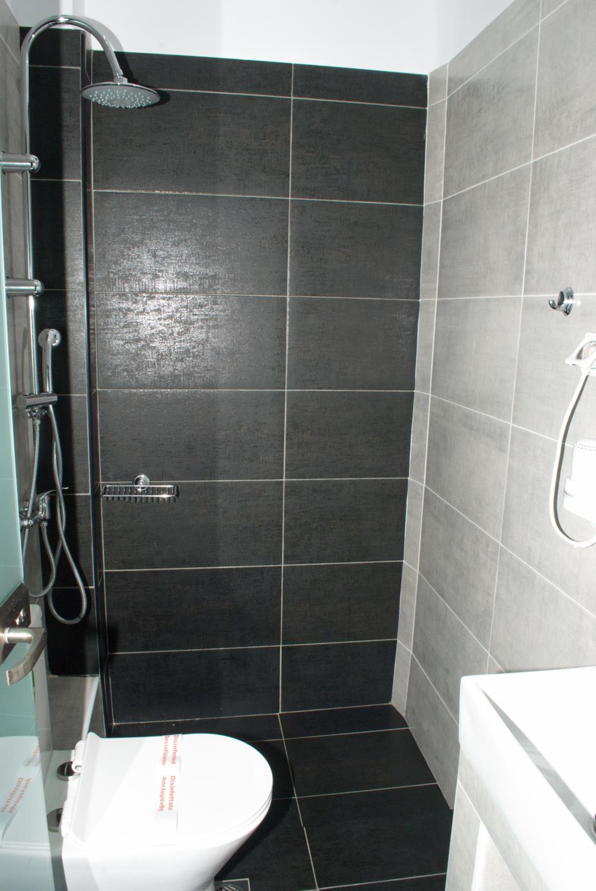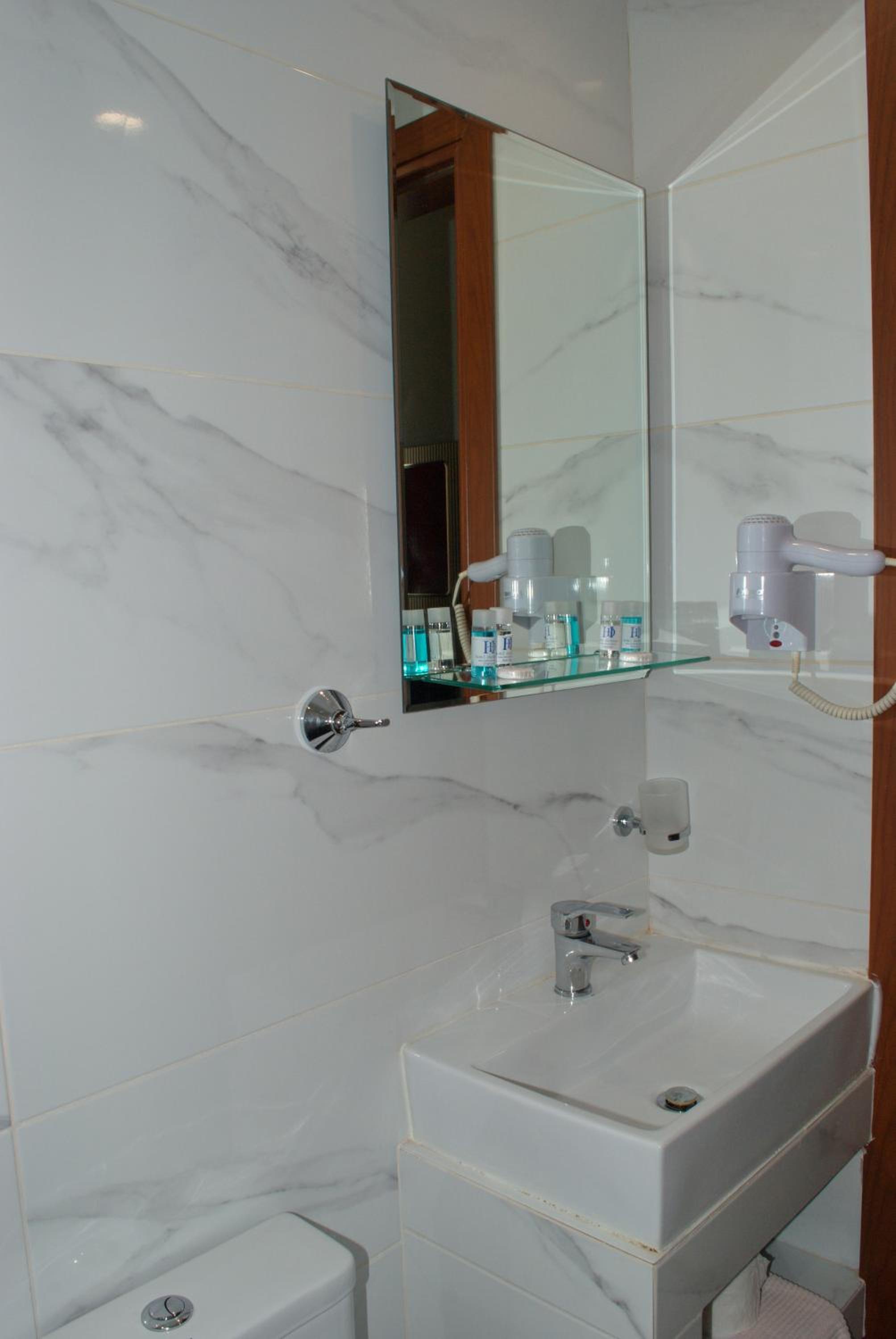 Wc:n var mycket liten, så man måste lägga fötterna i duschen då man satt på toaletten. Det fanns alltså inget utrymme mellan wc-stolen och duschens draperi. Luftkonditioneringen var mycket dålig.