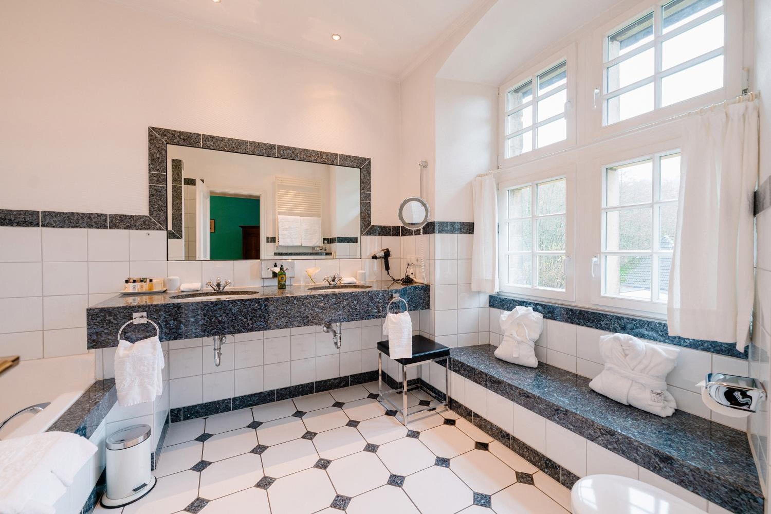 Experience a blend of modern luxury and historic charm at the 5-star Schlosshotel Hugenpoet. Indulge in the opulence of a 17th-century castle while enjoying top-notch amenities and services.