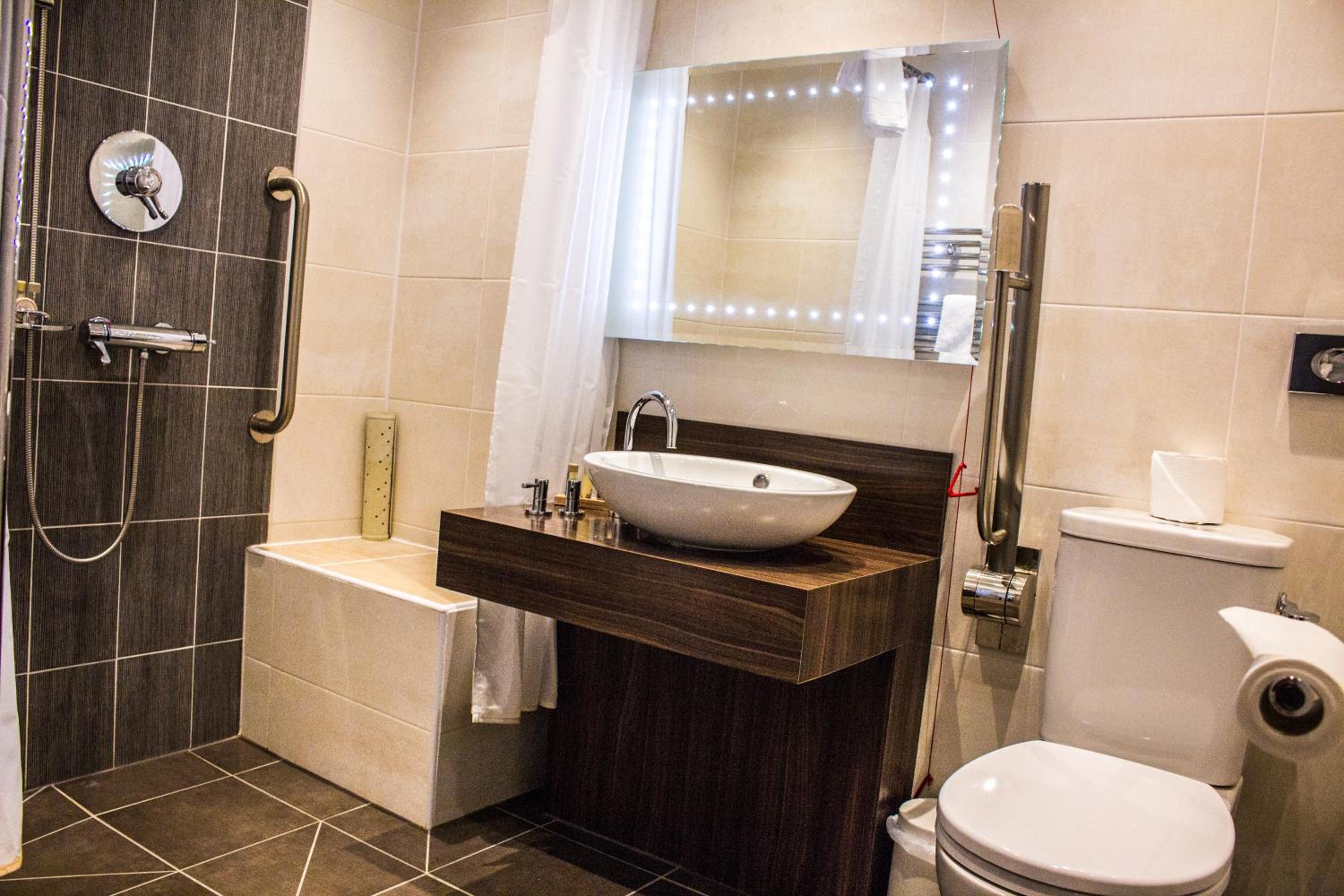 The venue was ok, the rooms were good and clean on the surface but behind the toilet seat was very very dirty with urine stains all over. I will stay again with disabled facilities but in the bathroom, especially an elevated toilet seat. Also the lifts should be working always for the comfort of disabled people.