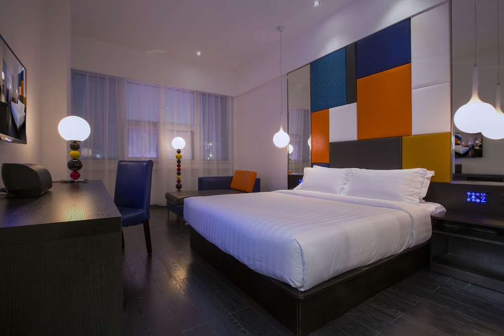房間整潔,蝙蝠俠房間主題很可愛,那個音響設備不錯。酒店非常近地鐵站,很方便。做會員後可14:00 check out,這點很好。