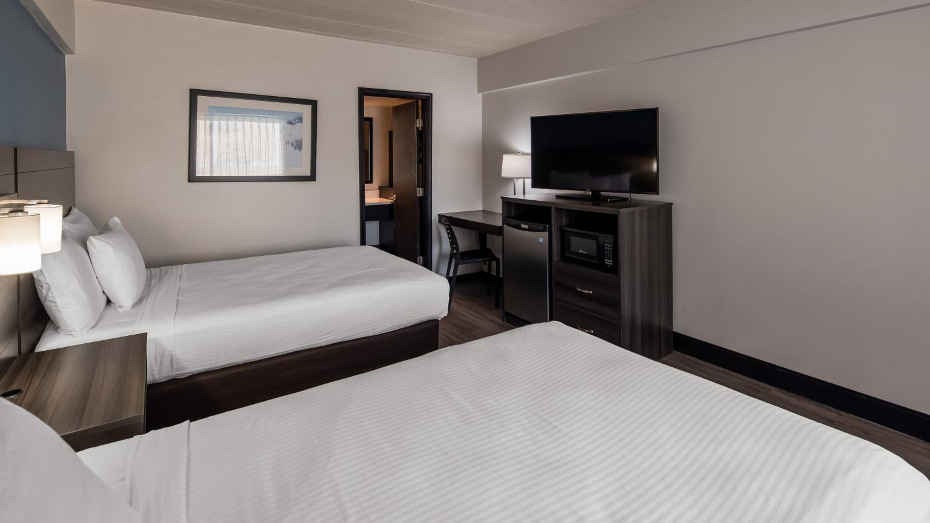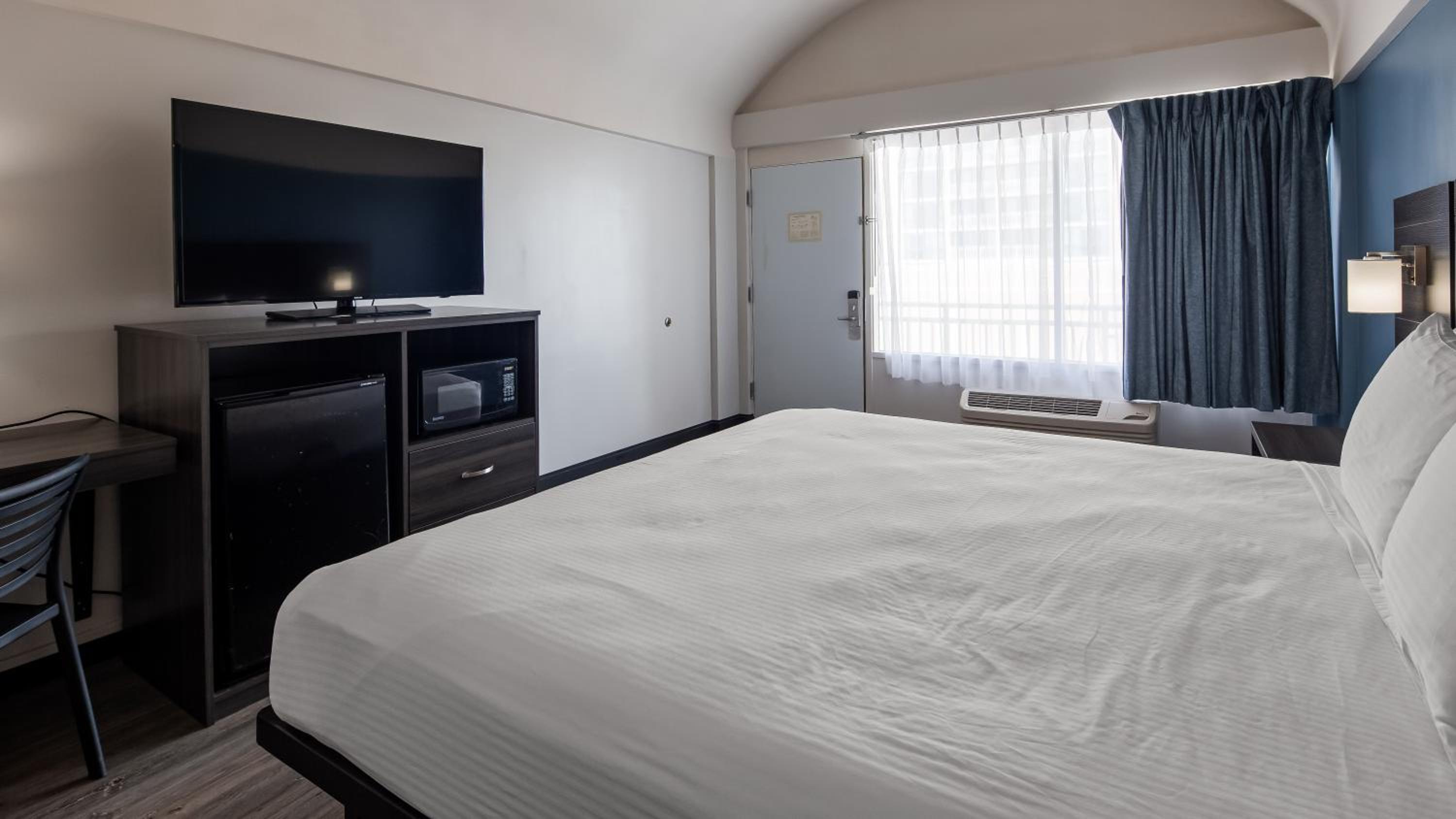 Each air-conditioned guest room is equipped with modern amenities such as free WiFi, a flat-screen cable TV, microwave, and refrigerator, ensuring a comfortable stay for all guests.