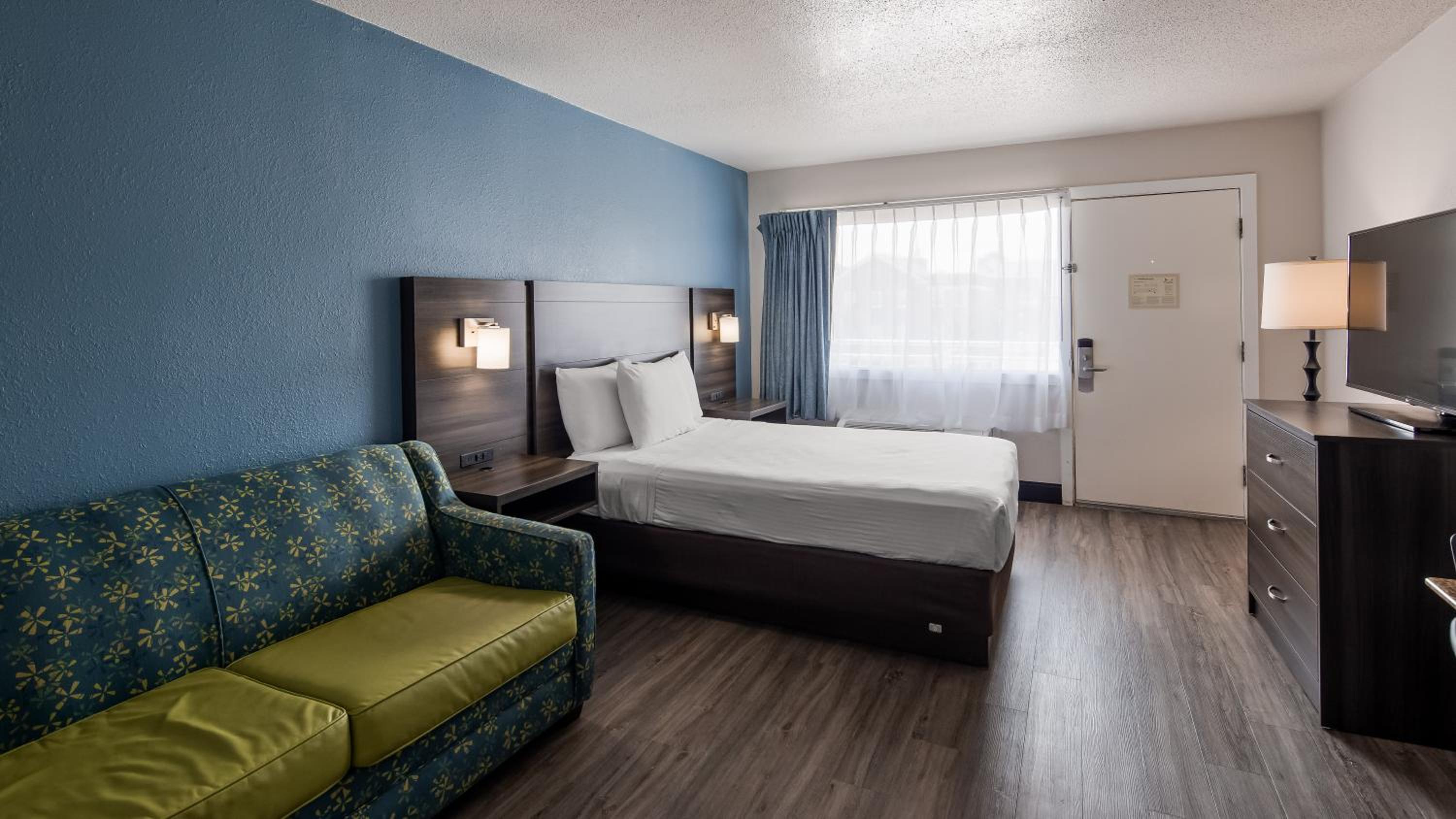 The hotel itself is not much to look at from the outside. It is very dated. The "pool" is quite small and located in the middle of the parking lot and I didn't see anyone using it. The breakfast was so-so. No proteins - no eggs, cheese, or meats but only waffles, cereals, and small pastries. And I know it's not the hotel's fault, but it's right on Atlantic Avenue, so there was traffic noise, especially from motorcycles. This did quiet down as I went to bed.