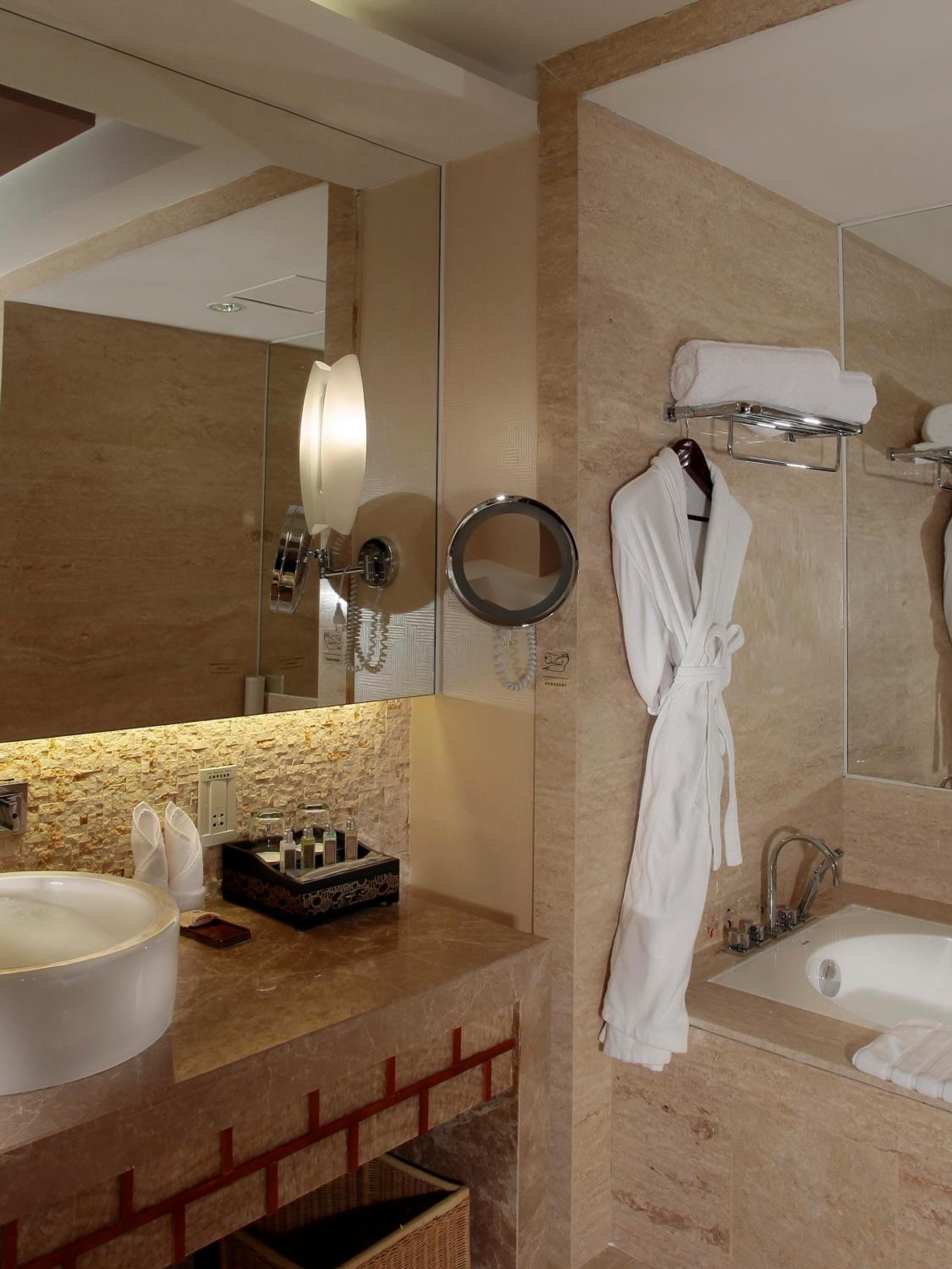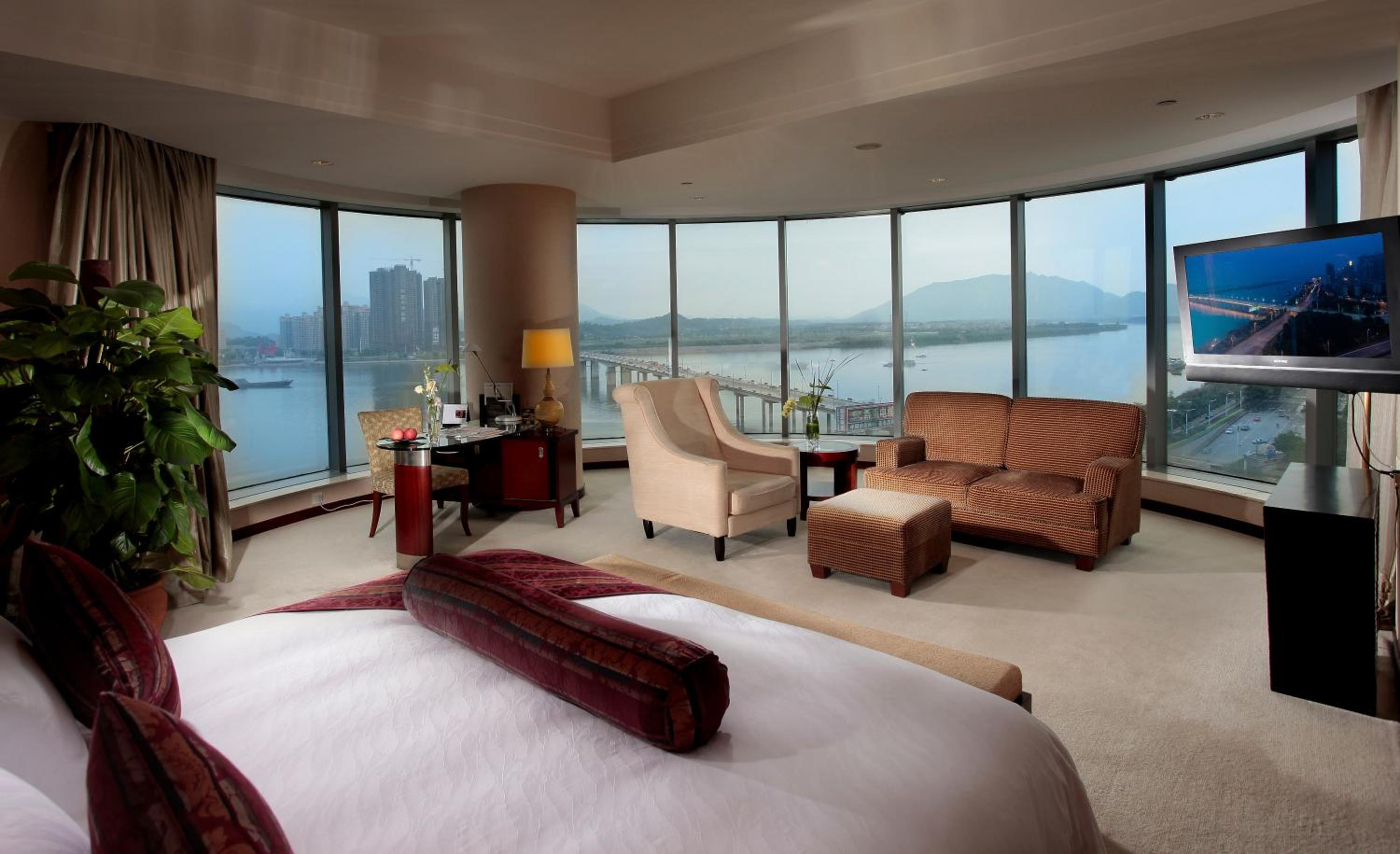 Large King room, great view, great spa with all the facilities including Gym, Hot tub, Sauna, Cold tub and nice indoor pool. The food was good especially the fish in the Chinese restaurant. Breakfast buffet was fine and service very good. We especially like dining in the lounge on the 18th floor. Western food was delivered to our great view private alcove.