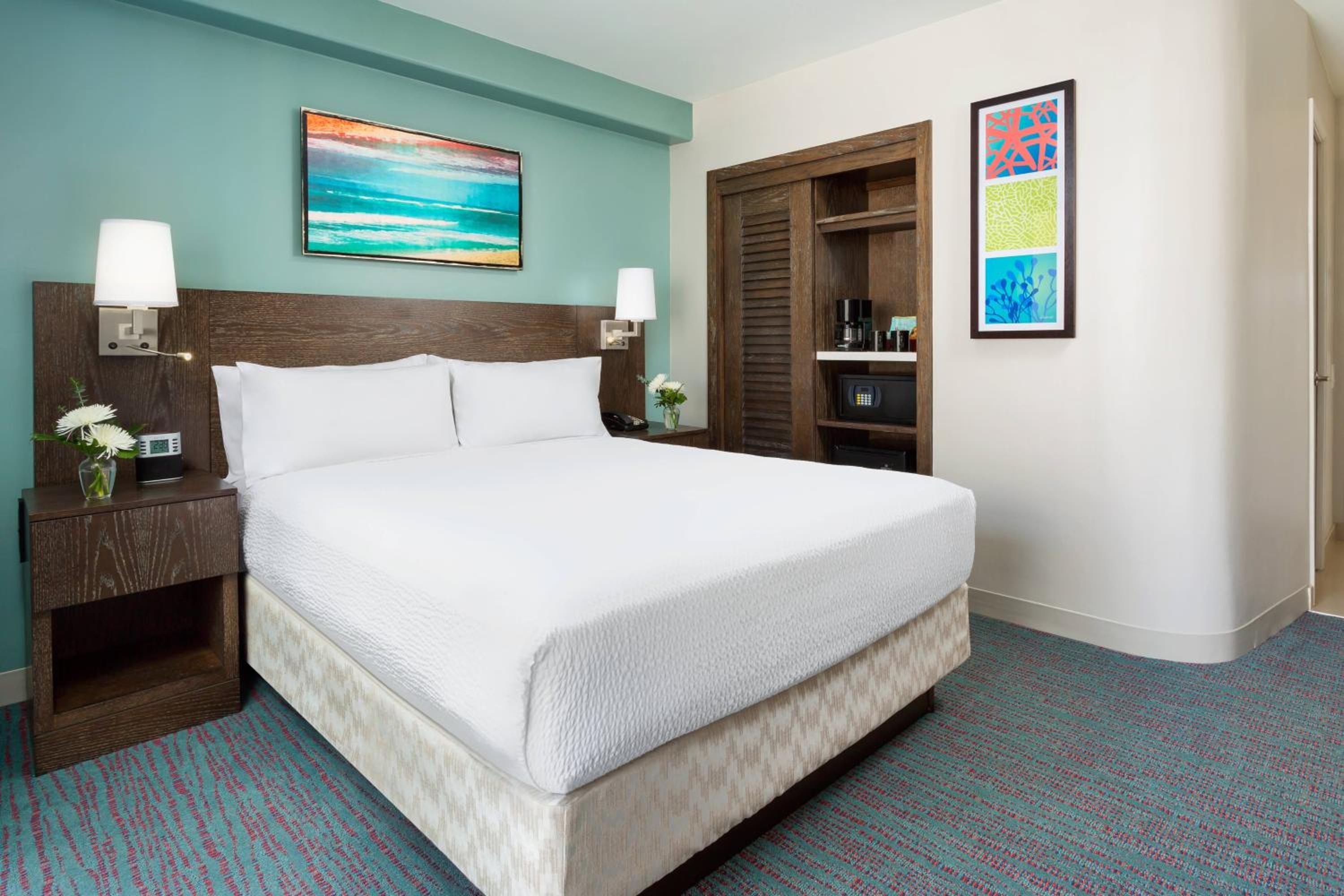 The hotel is conveniently located within walking distance of restaurants, target, coffee, and the beach. The rooms have paper thin walls and all night we heard noisy people, trucks outside, roosters, etc, it was LOUD! One of our rooms was super hot the whole day.