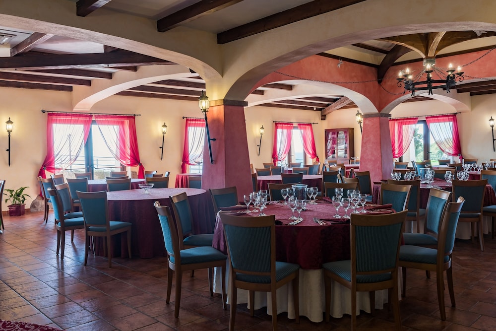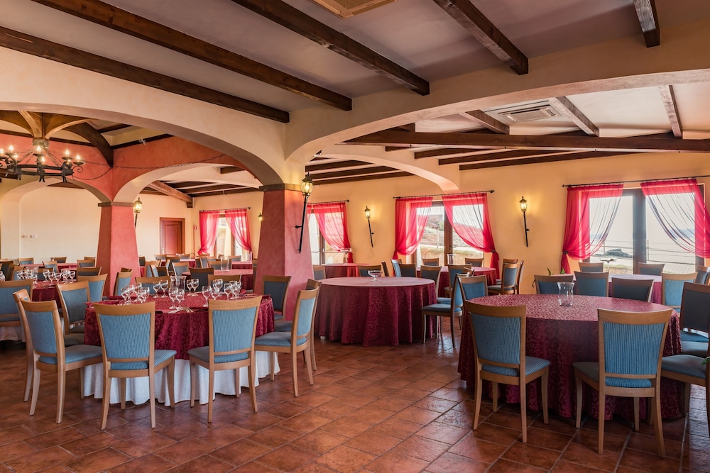 The hotel is situated on the cliff tops over looking the Mediterranean about 15 minutes walk to the centre of Portoscuso, which is a lovely town with many bars and restaurants. This is genuine Italy, as opposed to a tourist trap. Enjoy.