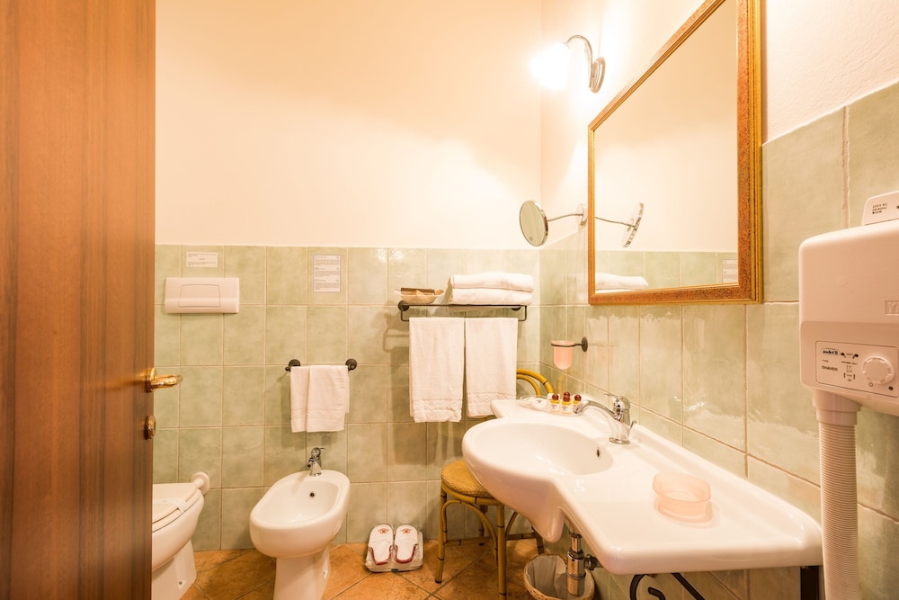 Don't expect The Ritz - this hotel is a little old fashioned in its decoration (mid-90s?) and the rooms are more basic than you might expect for 4* with smallish bathroom with shower perhaps not suitable for the larger person or someone with mobility issues. However the sea view rooms look out onto the swimming pool and Mediterranean, the pool itself is what you are paying for in my opinion (for around €130 a night its a bargain) and the rooms are kept spotlessly clean, as is the rest of the hotel. You do need your own pool/beach towel or else must pay to hire one. And if you like fancy soaps in the bathroom bring your own. Breakfast has a selection of fruits, cereals, and cooked fare and is very good. Staff in all areas of the hotel are very attentive and better than almost any other 4* that I've stayed at. There's also plenty of free parking. Matteo is the manager with a good command of English.